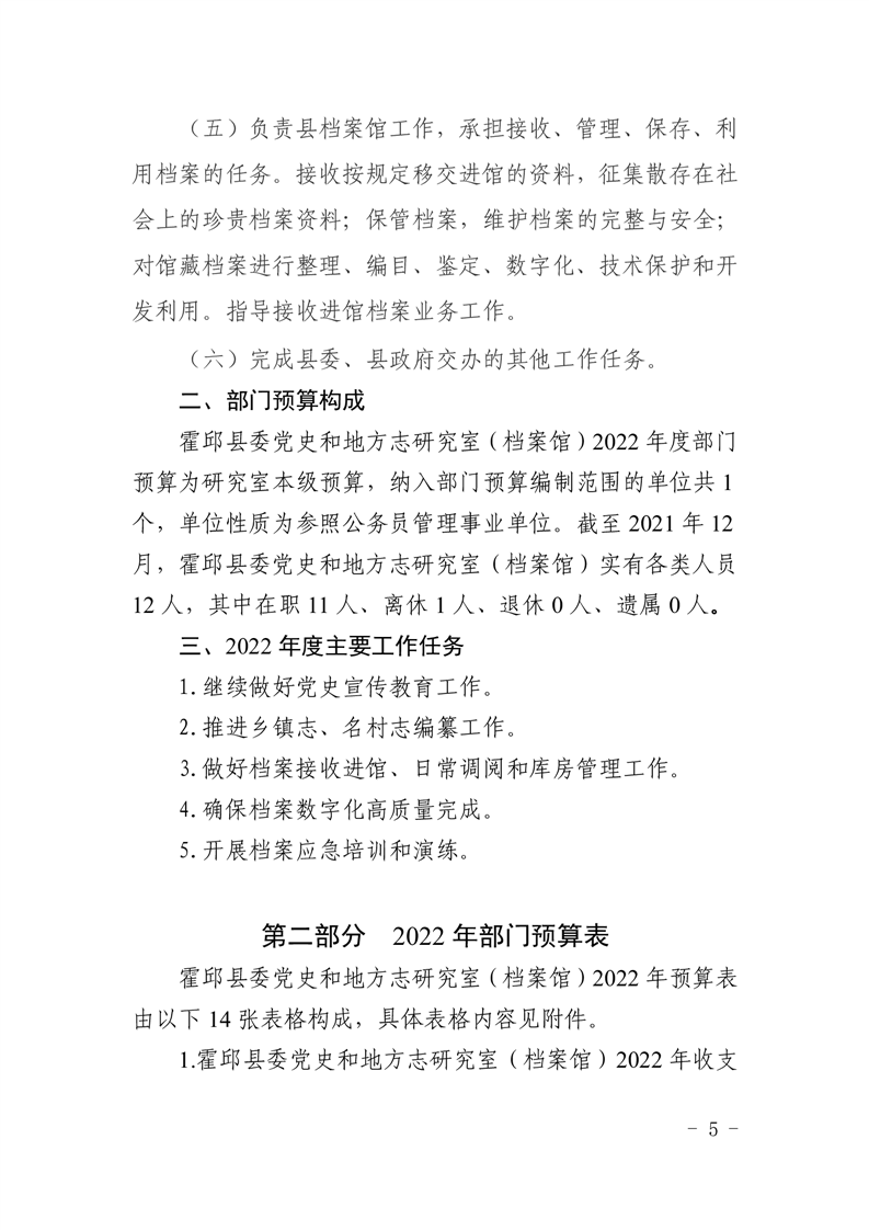 霍邱县委党史和地方志研究室(档案馆)2022年部门预算公开