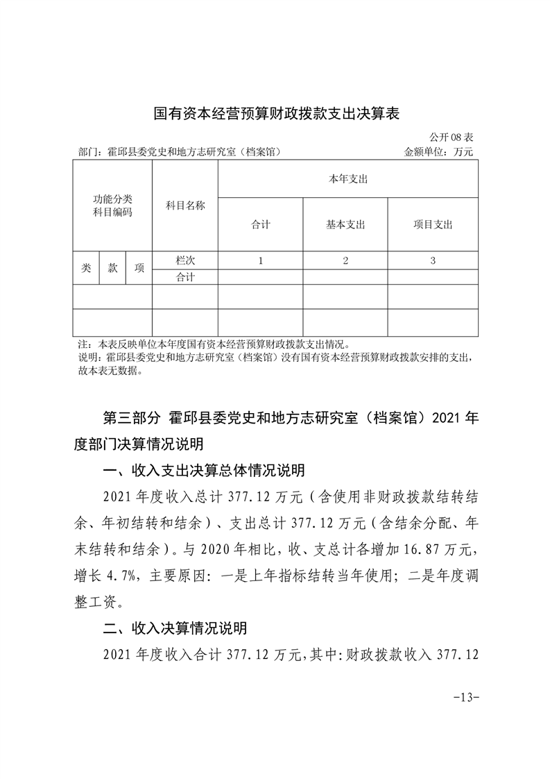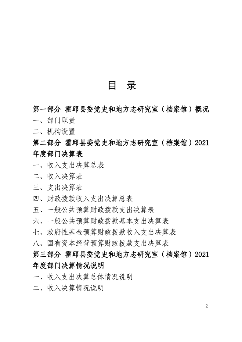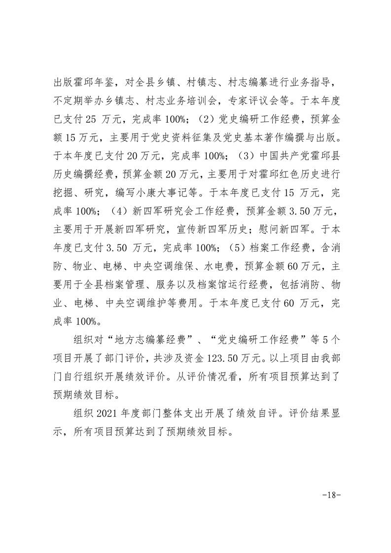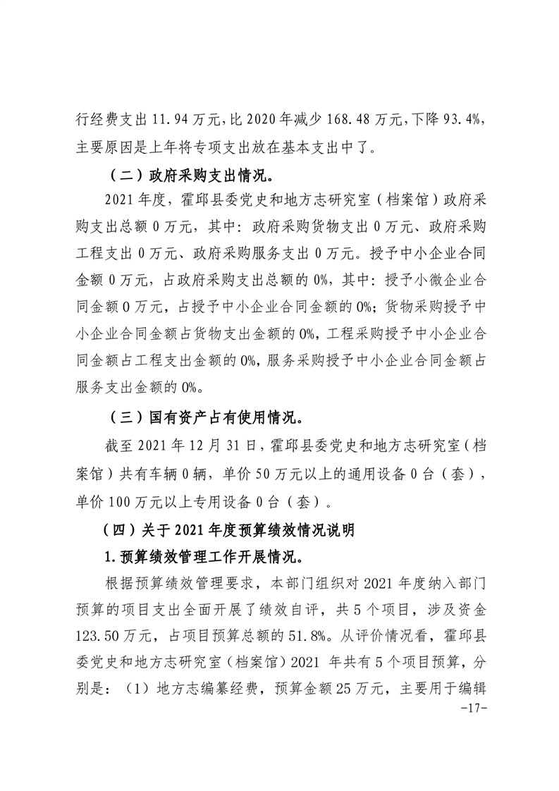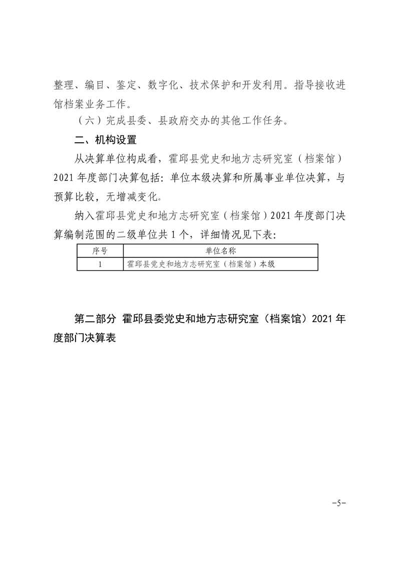 霍邱县委党史和地方志研究室(档案馆)2021年度部门决算公开