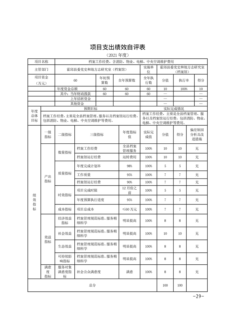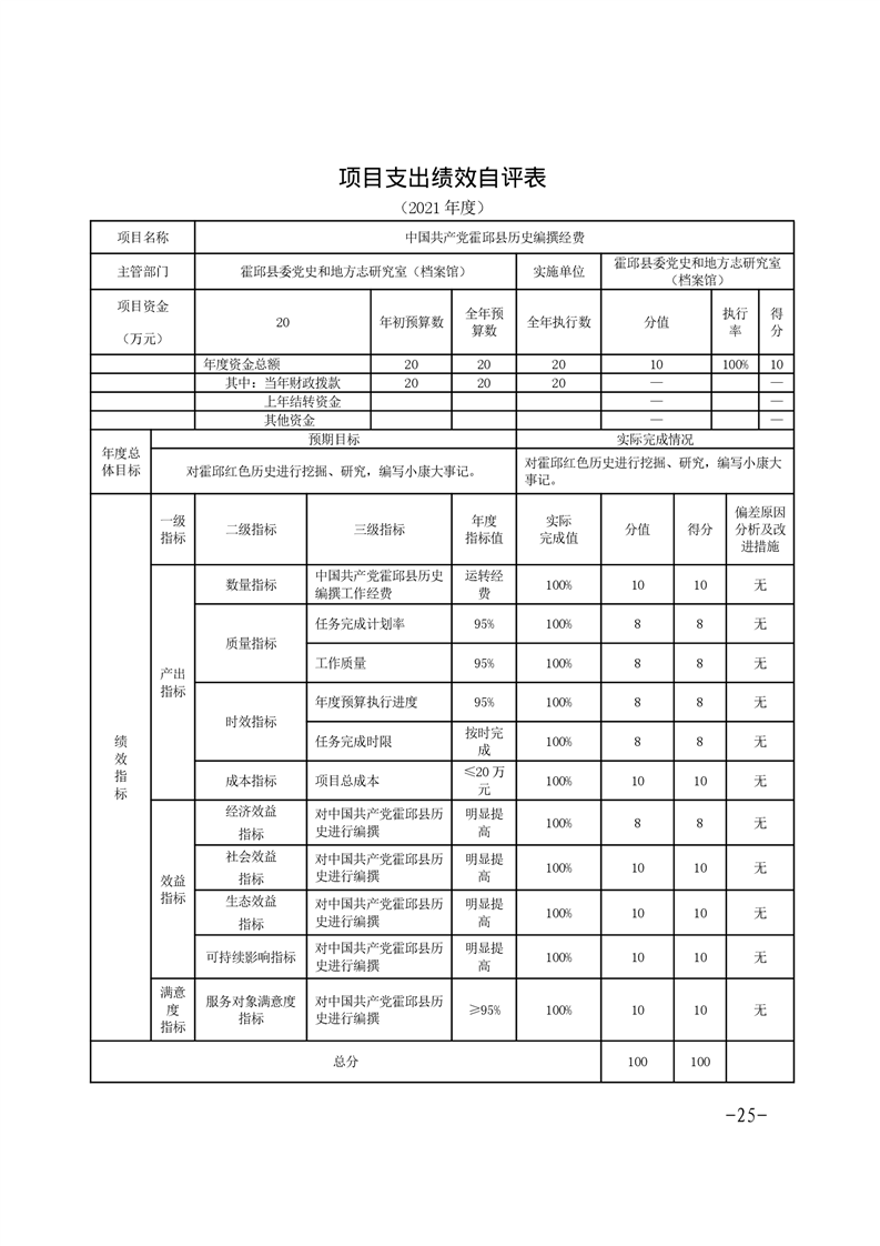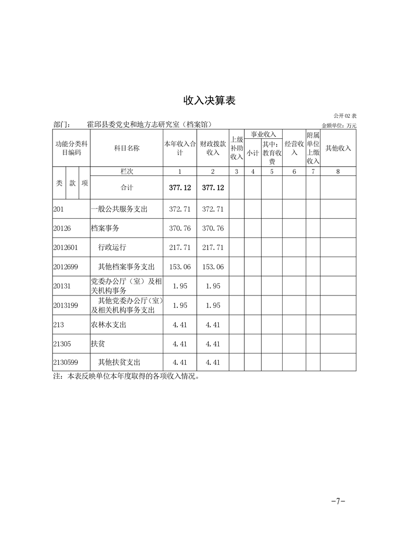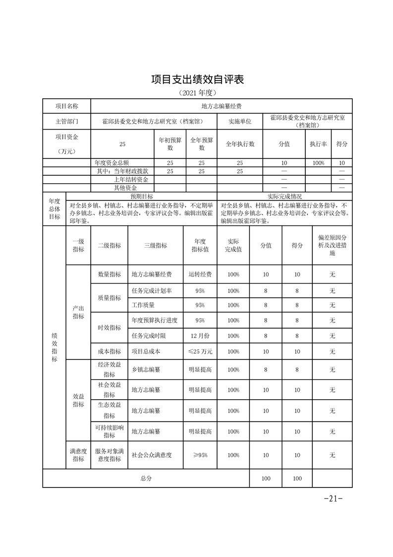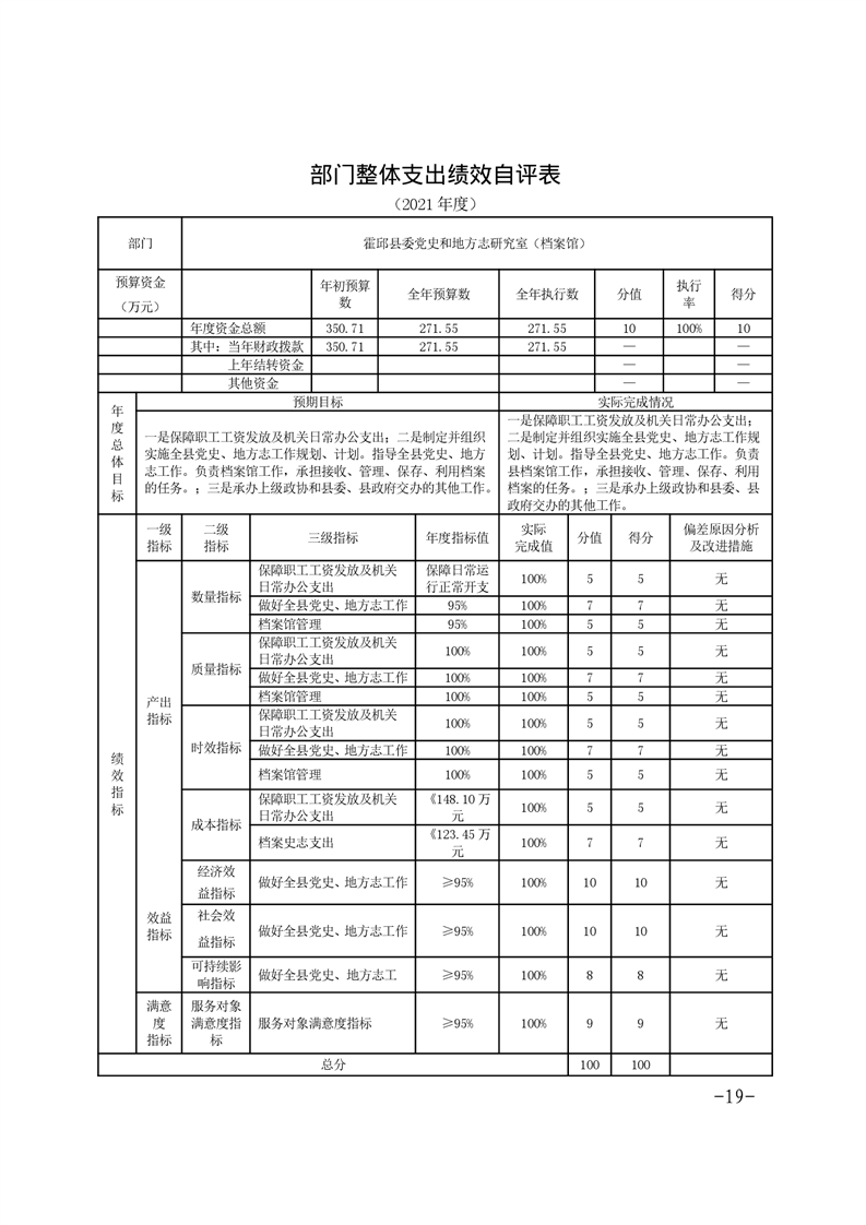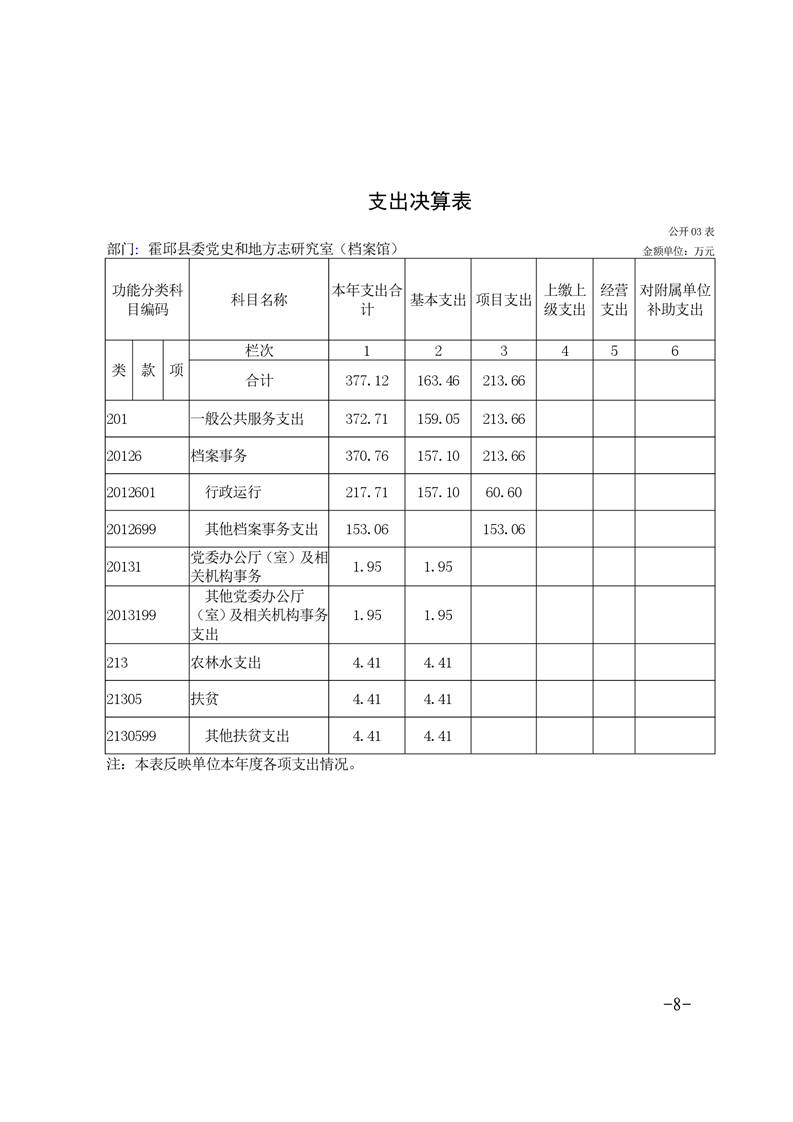 霍邱县委党史和地方志研究室(档案馆)2021年度部门决算公开