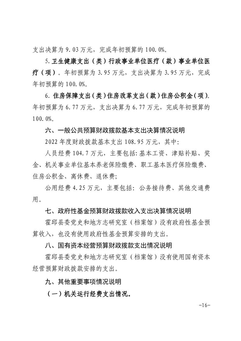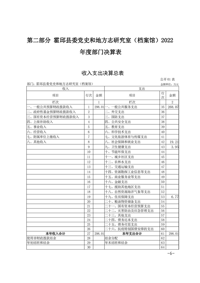 霍邱县委党史和地方志研究室(档案馆)2022年度部门决算