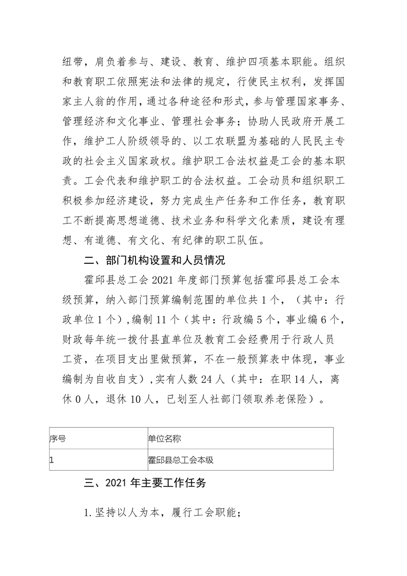 霍邱县总工会2021年部门预算公开