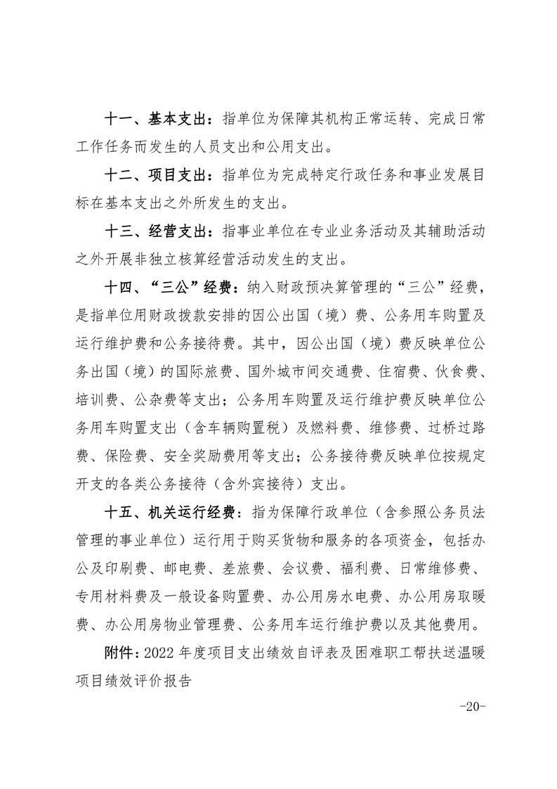 附件:2022年度项目支出绩效自评表及困难职工帮扶送温暖项目绩效评价报告.pdf
