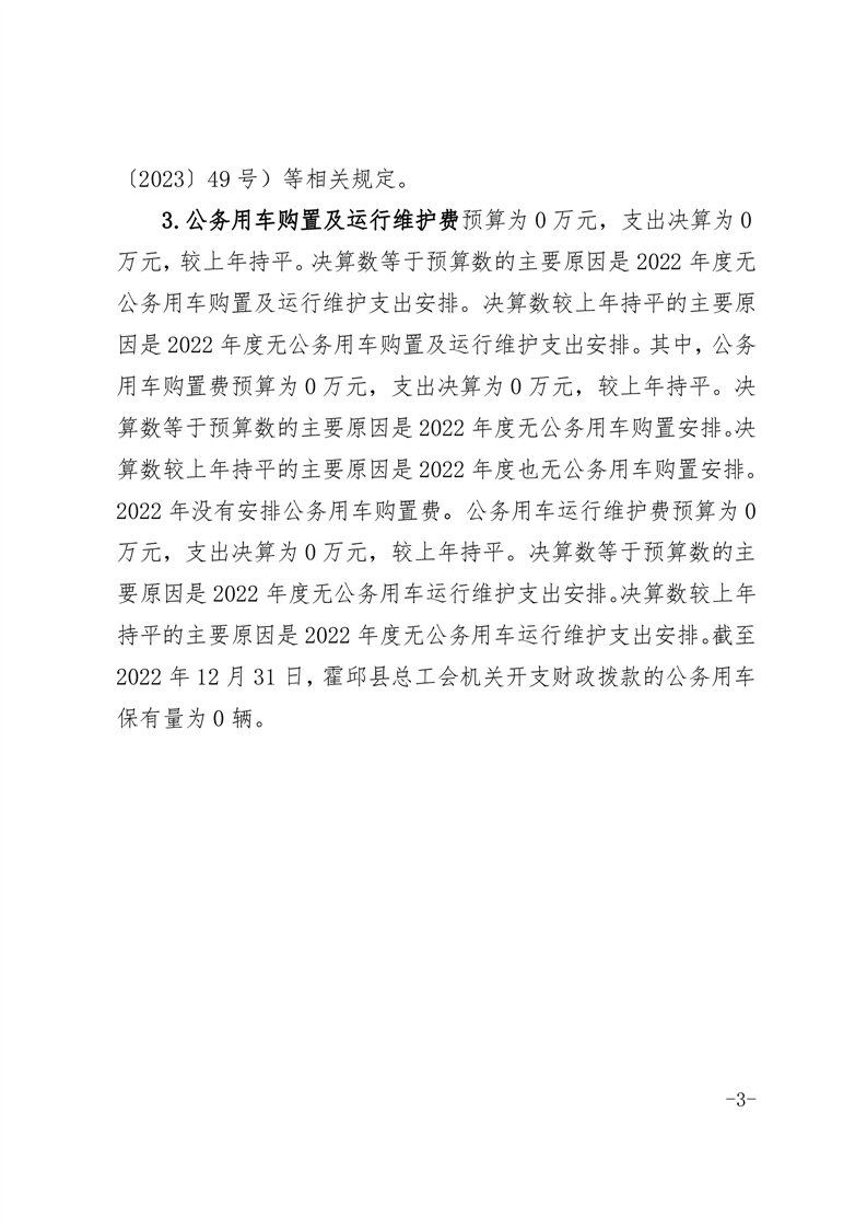 霍邱县总工会2022年度“三公”经费公开