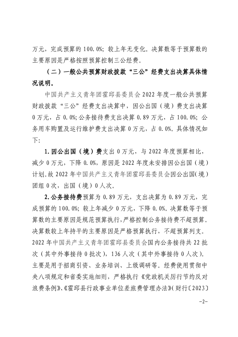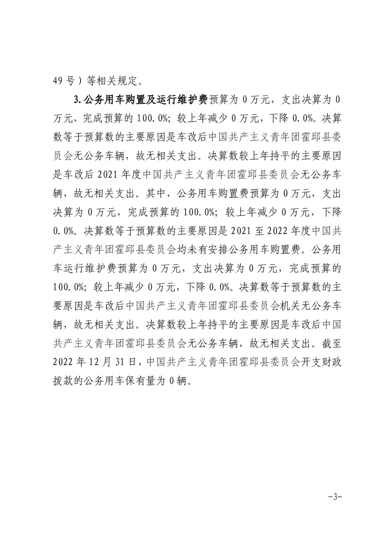 中国共产主义青年团霍邱县委员会2022年度一般公共预算财政拨款“三公”经费支出决算