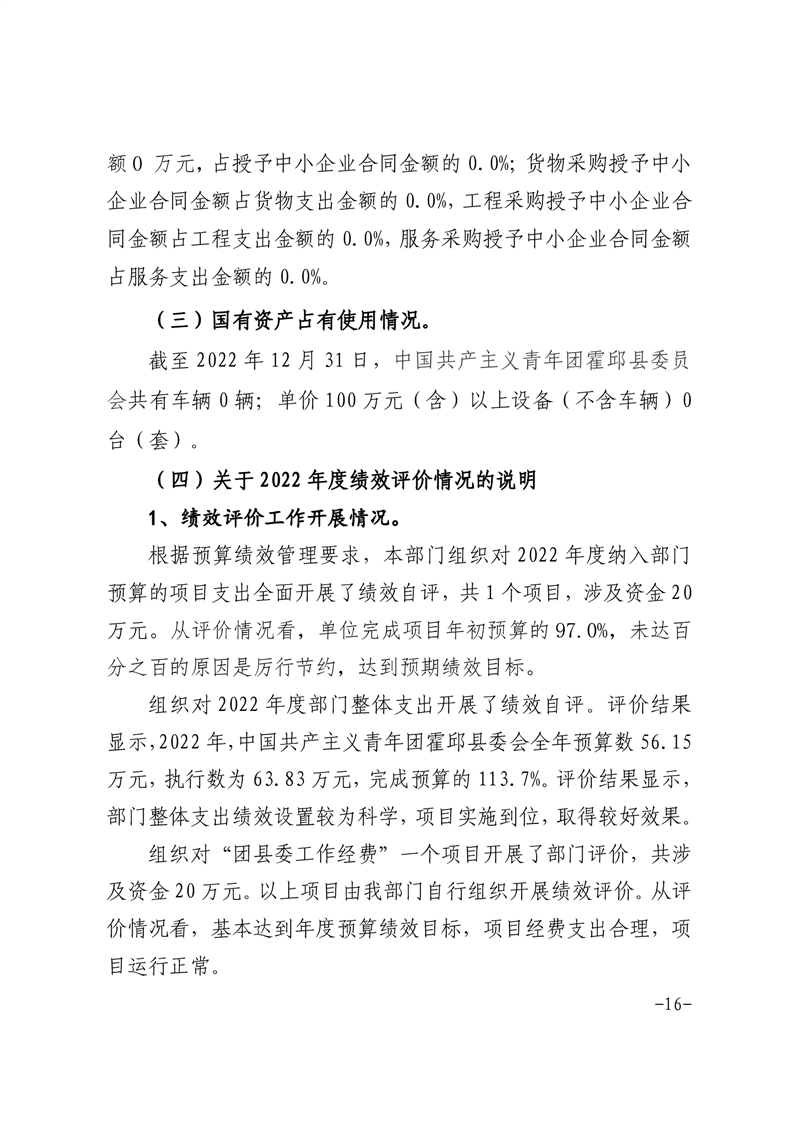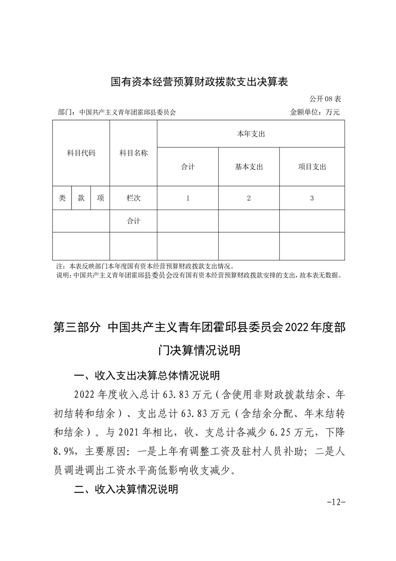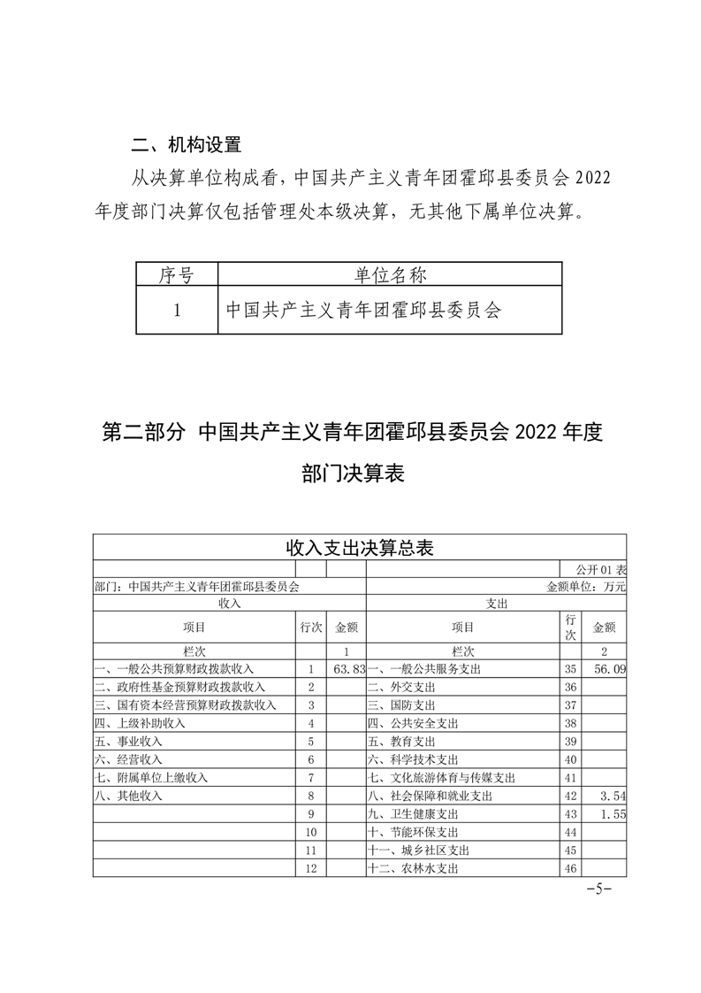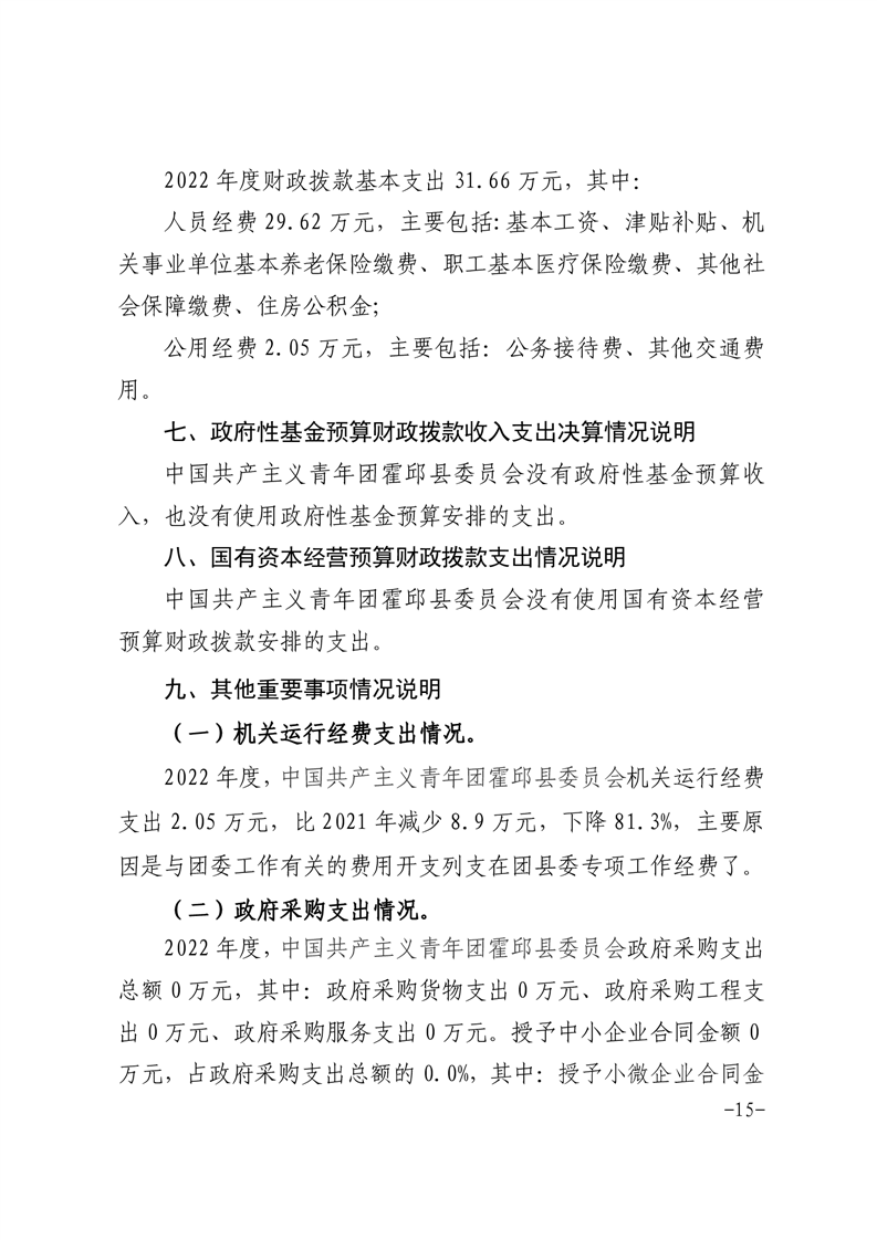 中国共产主义青年团霍邱县委员会2022年度部门决算