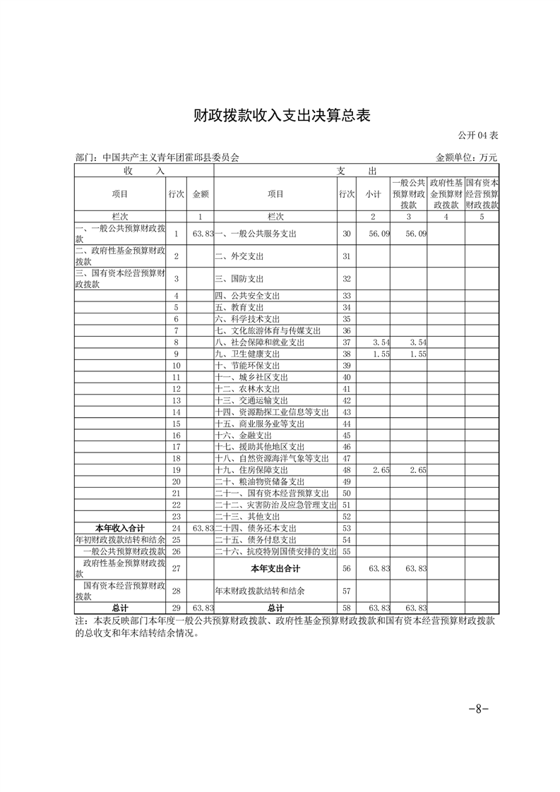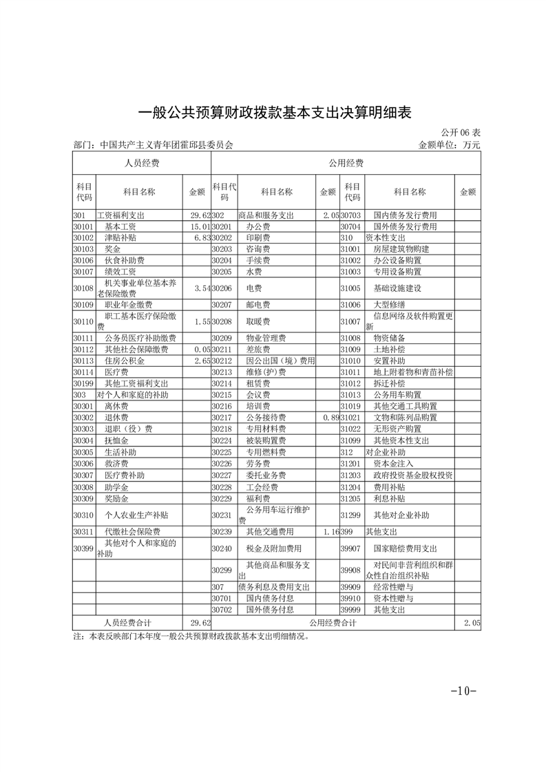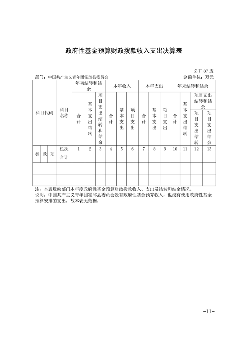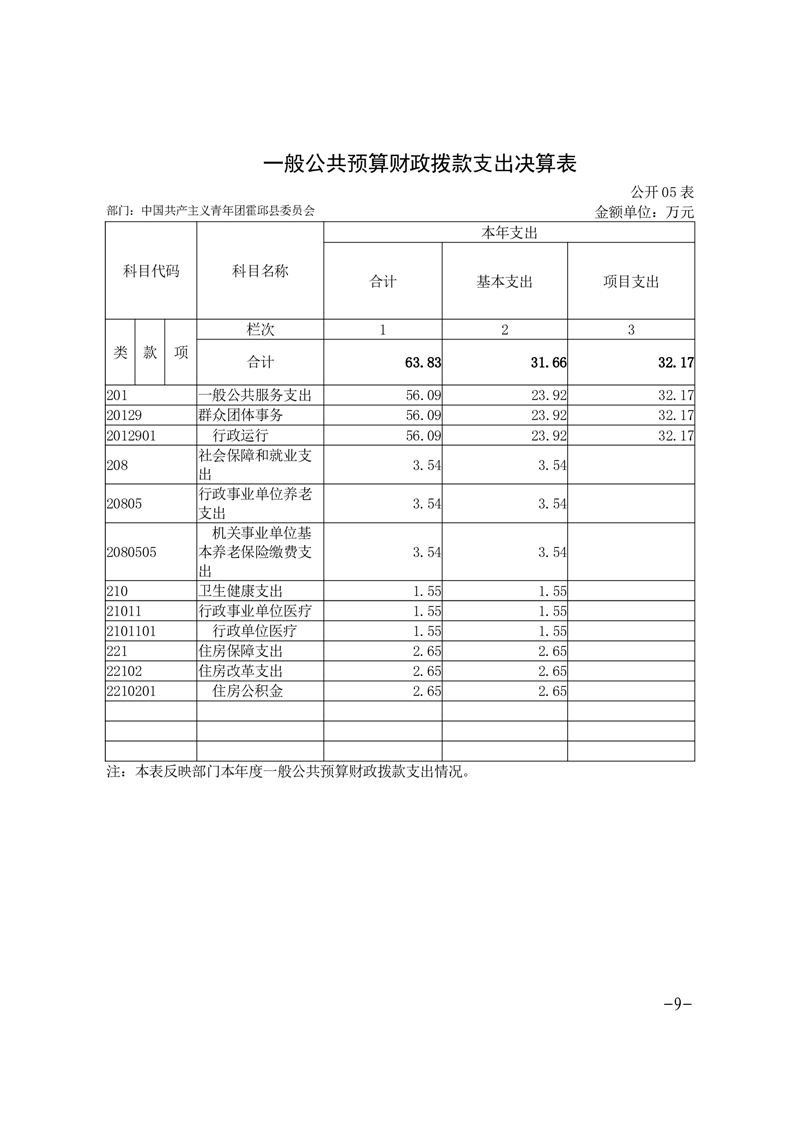 中国共产主义青年团霍邱县委员会2022年度部门决算