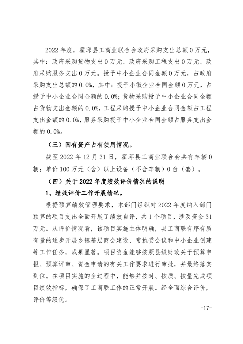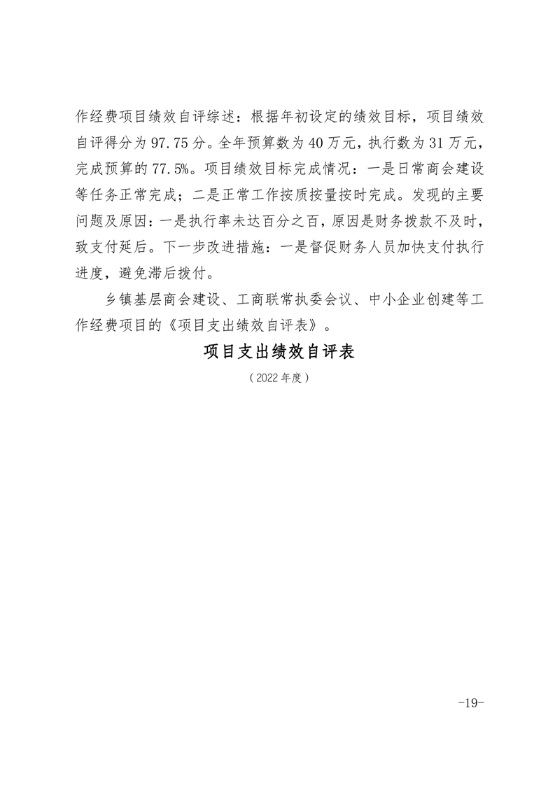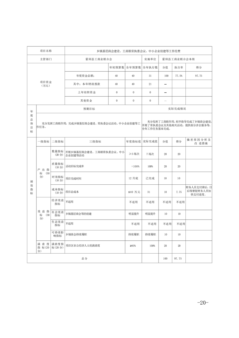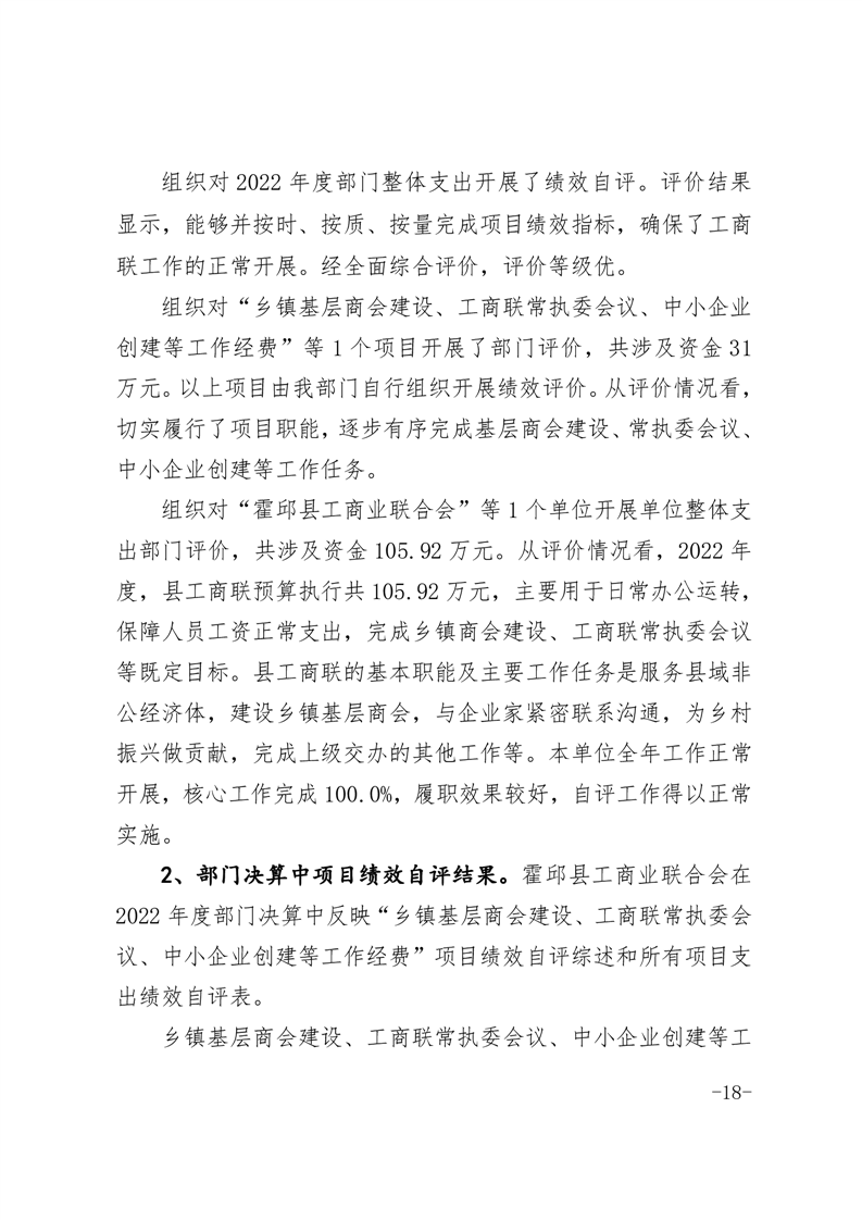 霍邱县工商业联合会2022年度项目支出绩效自评表及2022年度乡镇基层商会建设、工商联常执委会议、中小企业创建等工作经费项目绩效评价报告.pdf