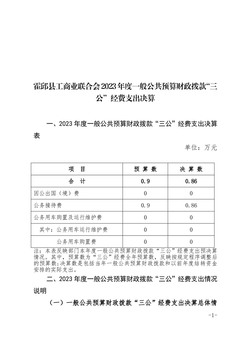 霍邱县工商业联合会2023年度一般公共预算财政拨款“三公”经费支出决算
