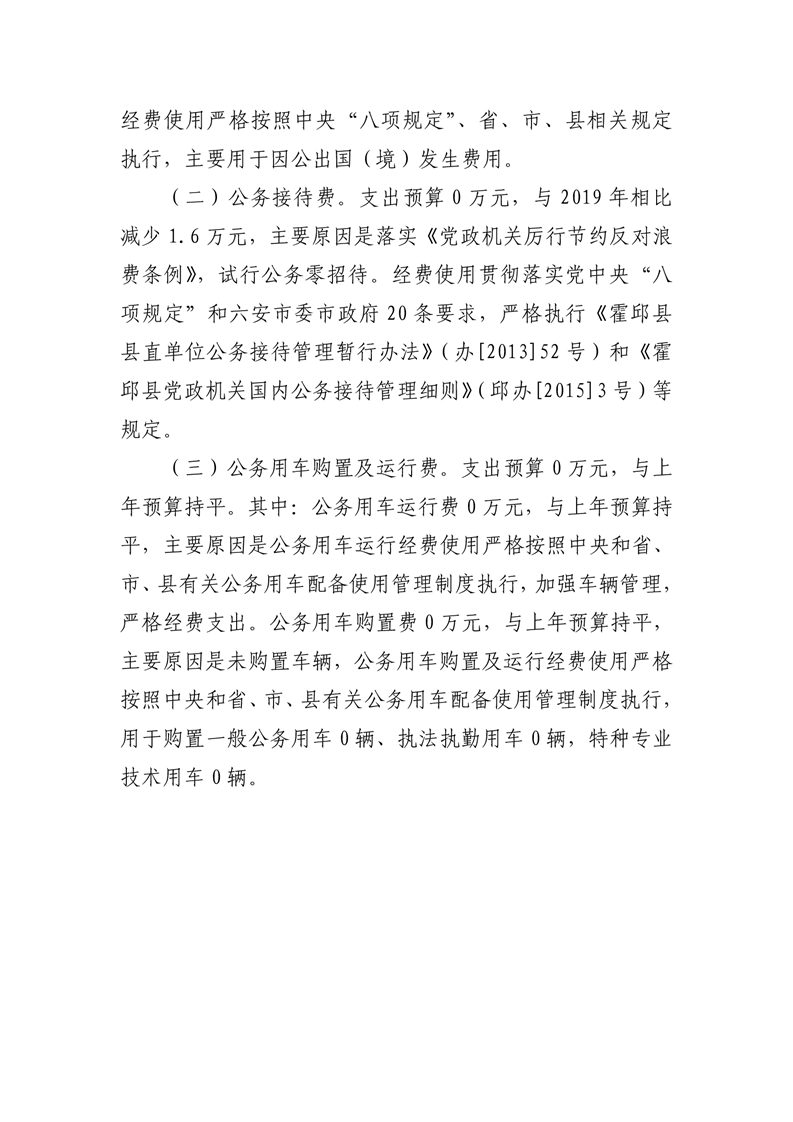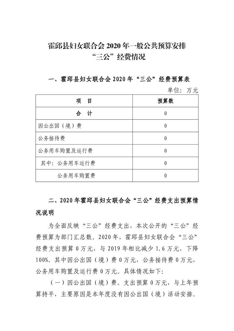 霍邱县妇女联合会2020年一般公共预算安排“三公”经费情况