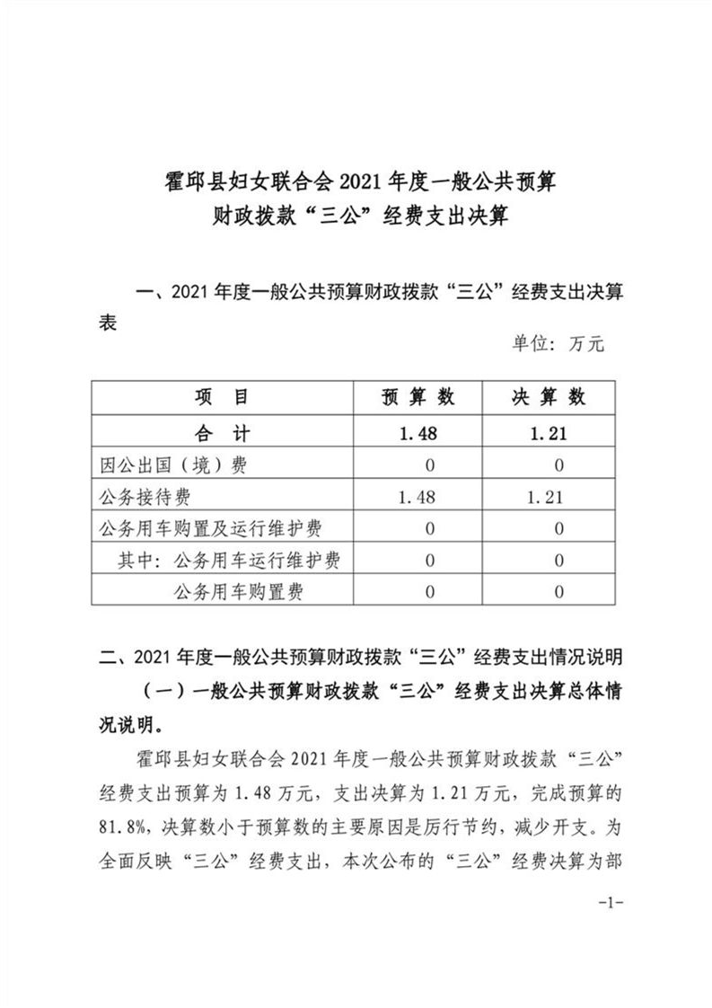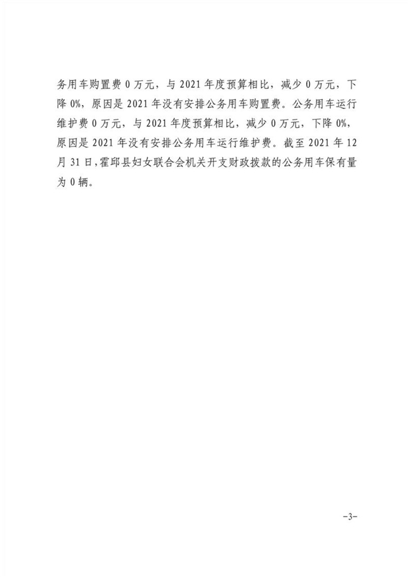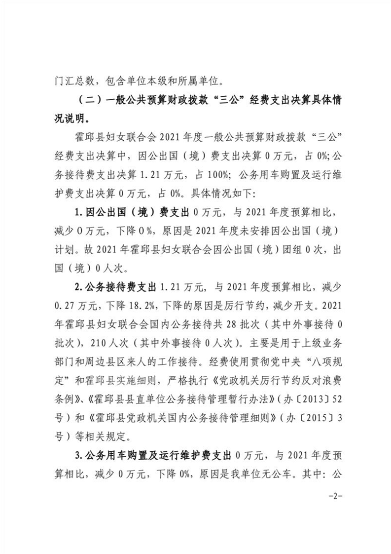 霍邱县妇女联合会2021年三公支出决算