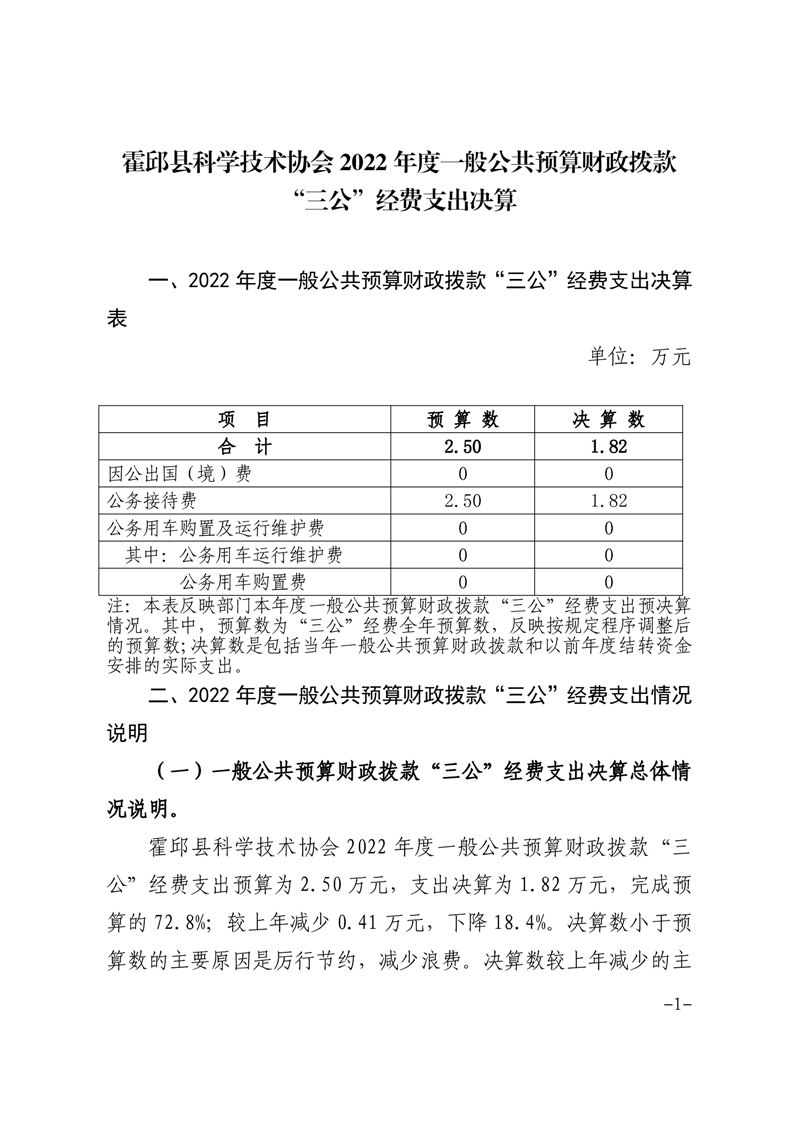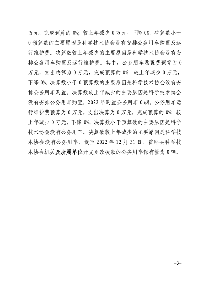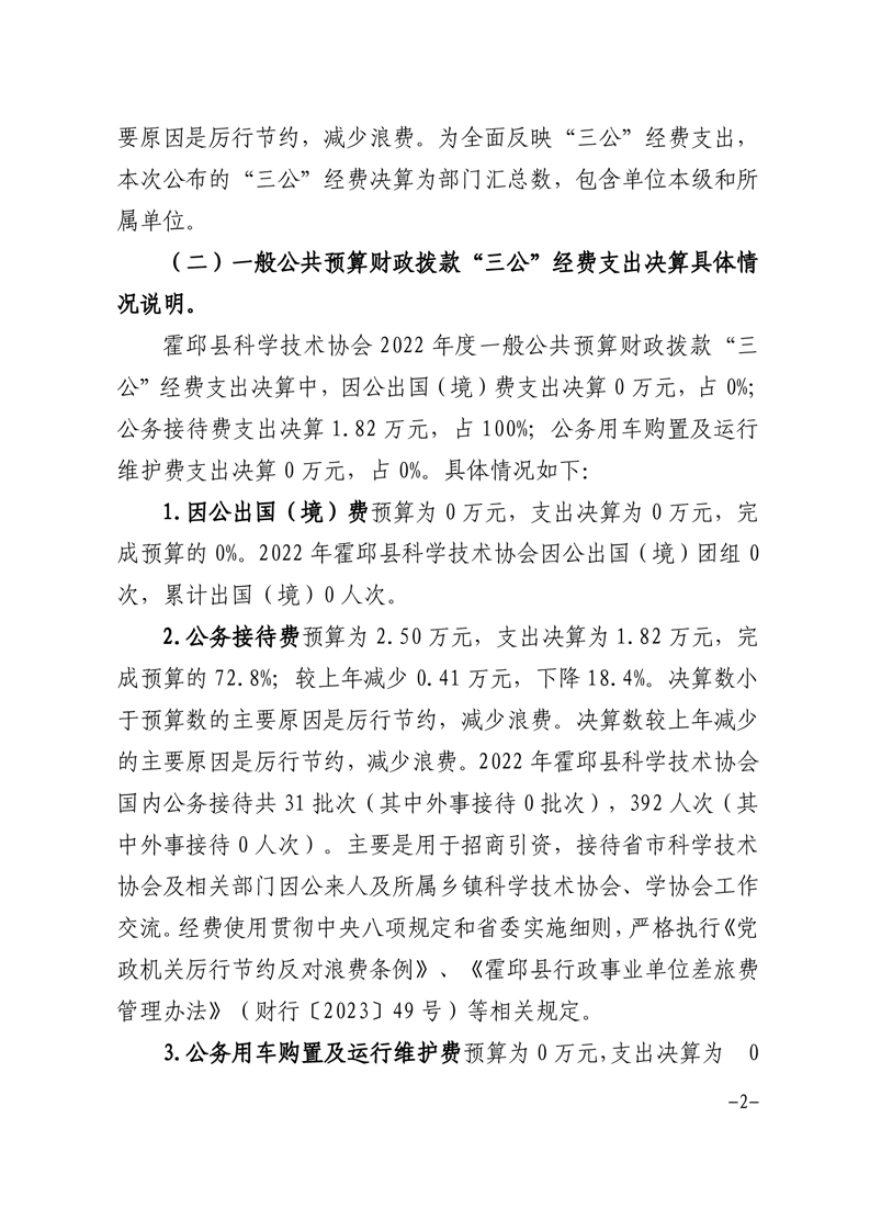 霍邱县科学技术协会2022年度一般公共预算财政拨款“三公”经费支出决算公开