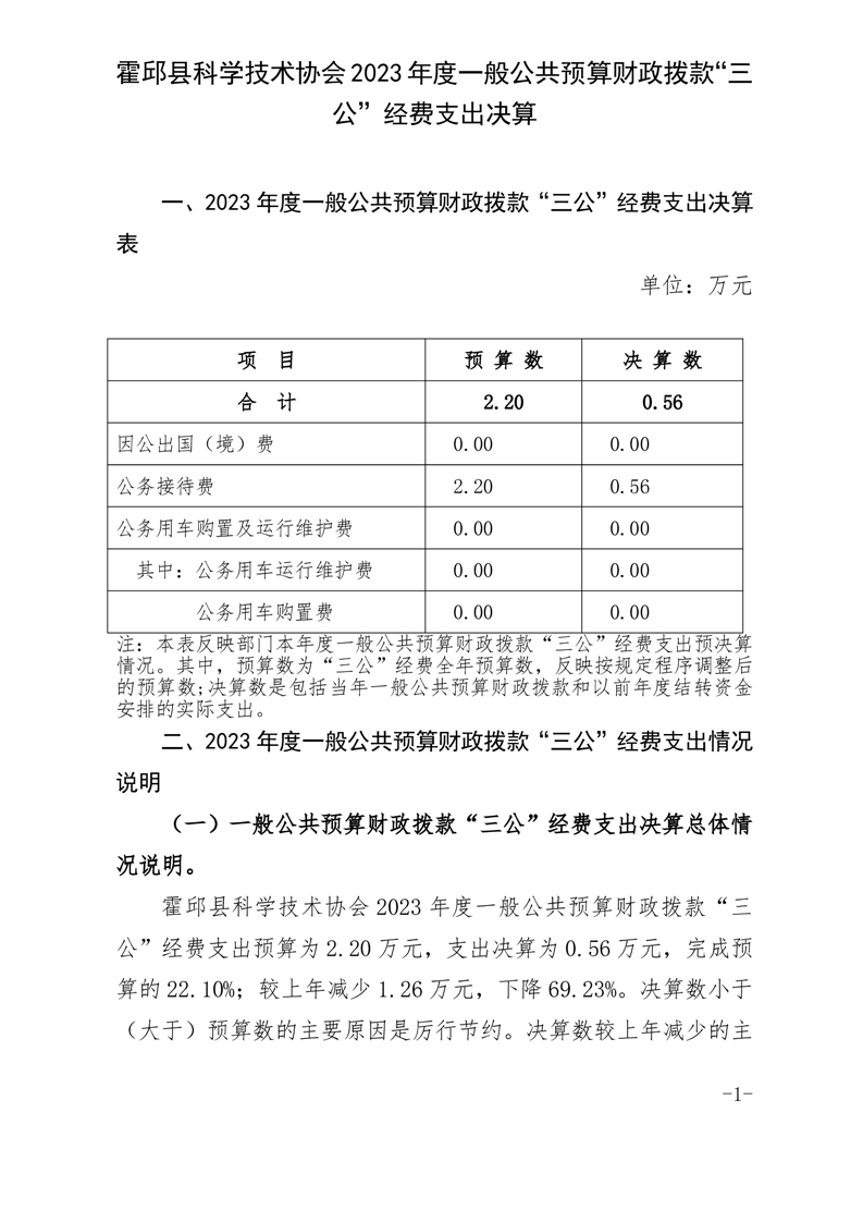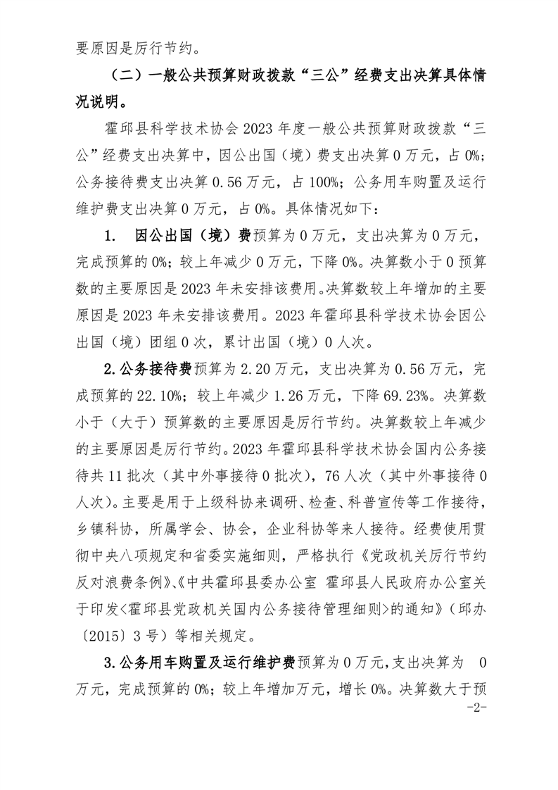 霍邱县科学技术协会2023年度一般公共预算财政拨款“三公”经费支出决算