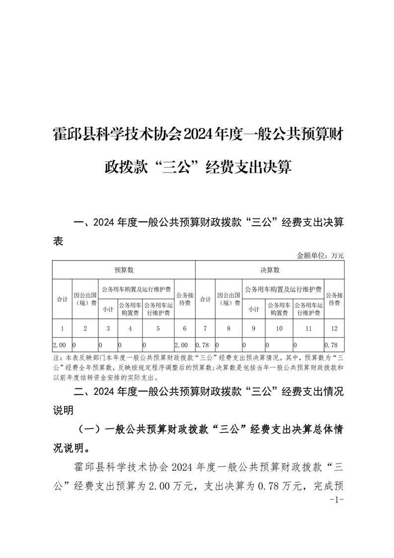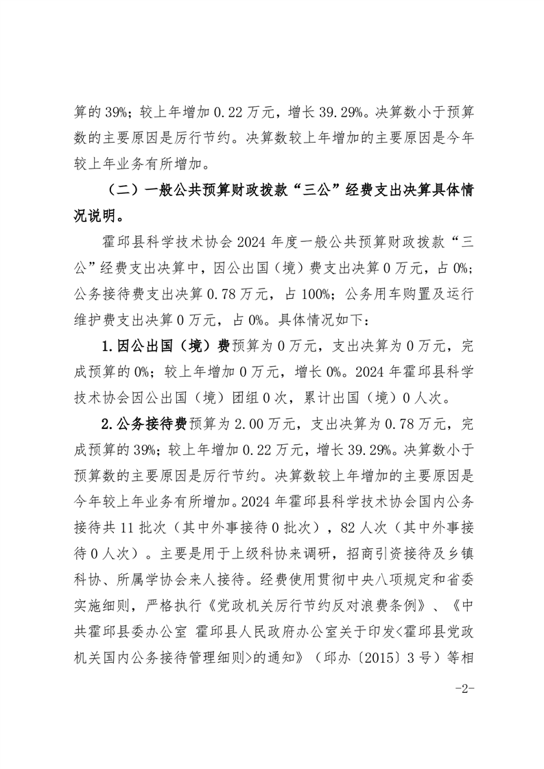 霍邱县科学技术协会2024年度一般公共预算财政拨款“三公”经费支出决算