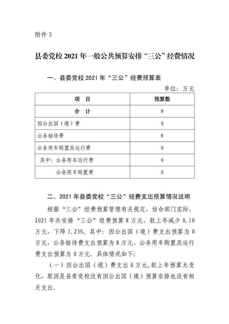 县委党校 2021 年一般公共预算安排“三公”经费情况
