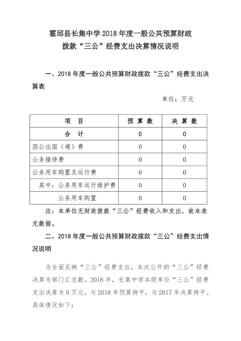 霍邱县长集中学2018年部门“三公”经费决算