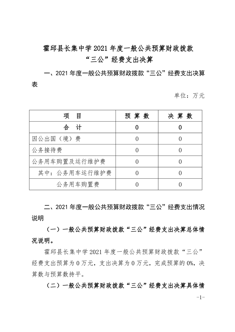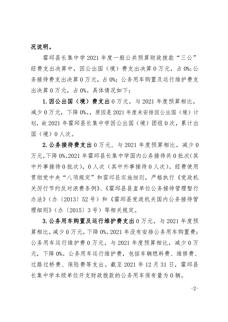 霍邱县长集中学 2021年度“ 三公”经费决算公开