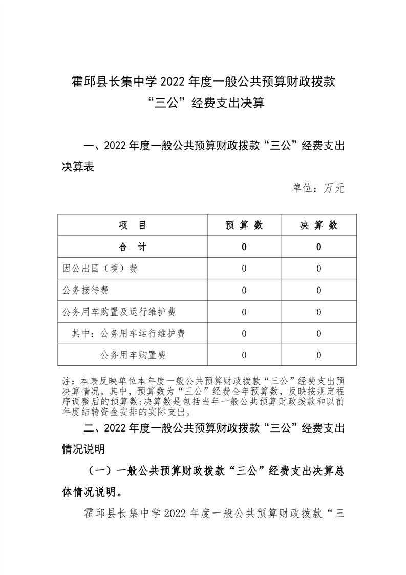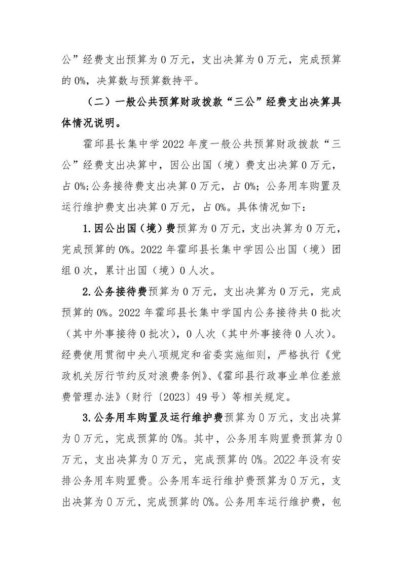 霍邱县长集中学 2022 年度一般公共预算财政拨款“三公” 经费支出决算