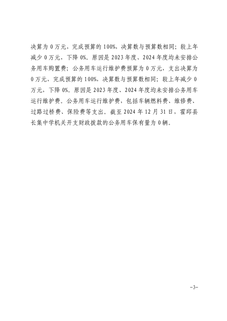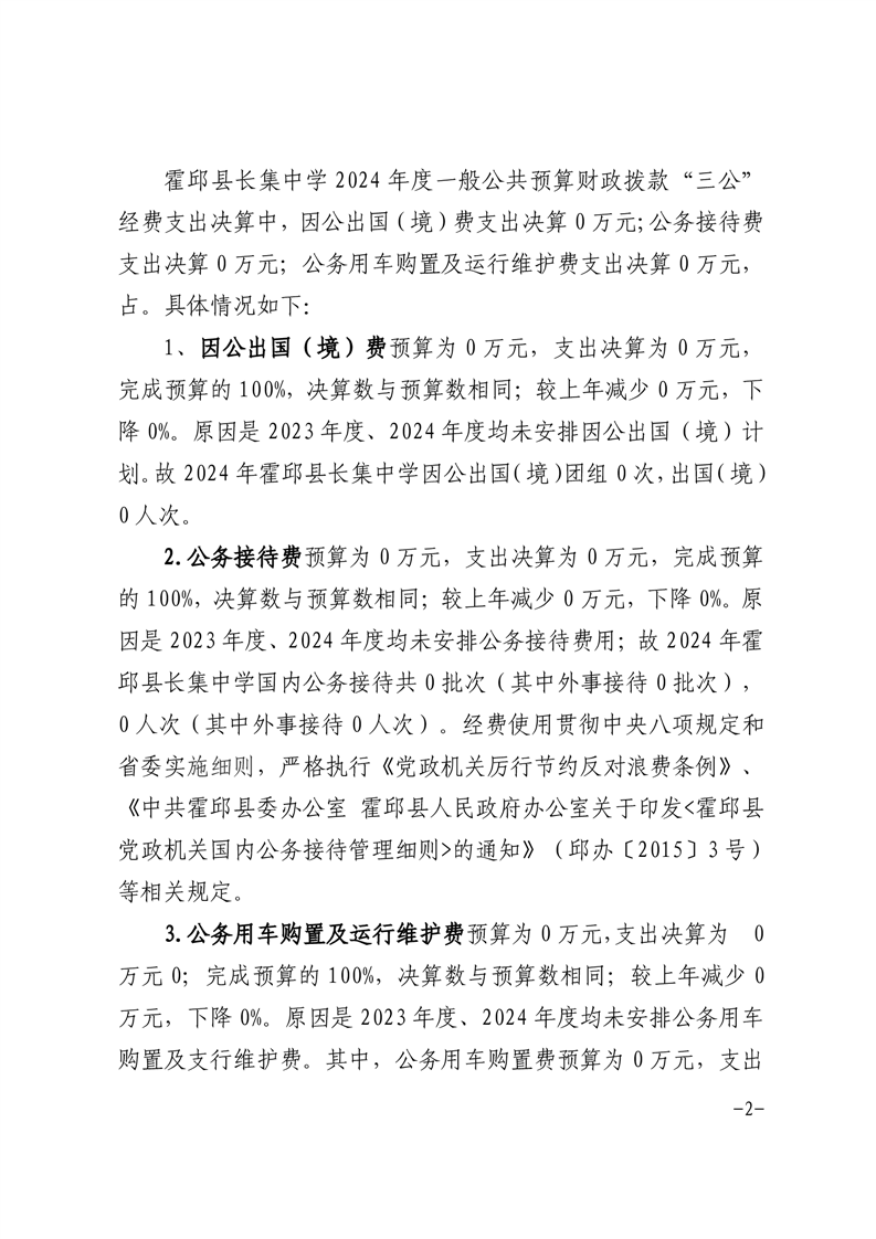 霍邱县长集中学2024年度一般公共预算财政拨款“三公”经费支出决算