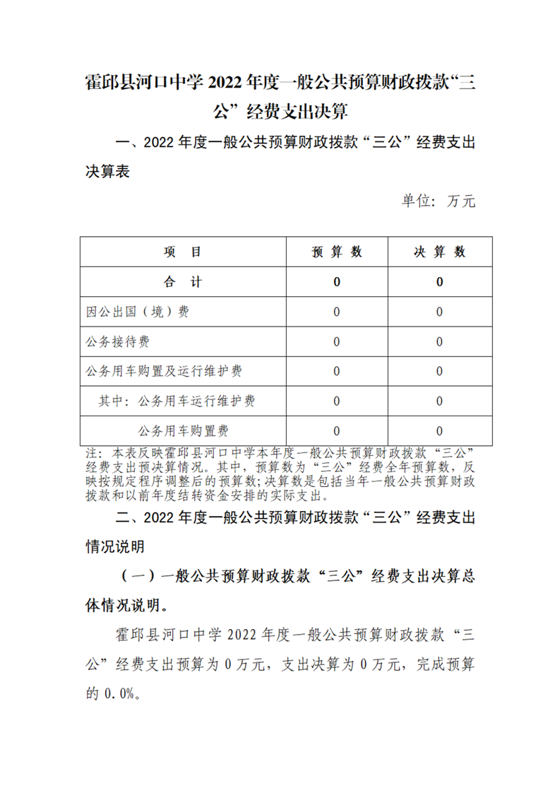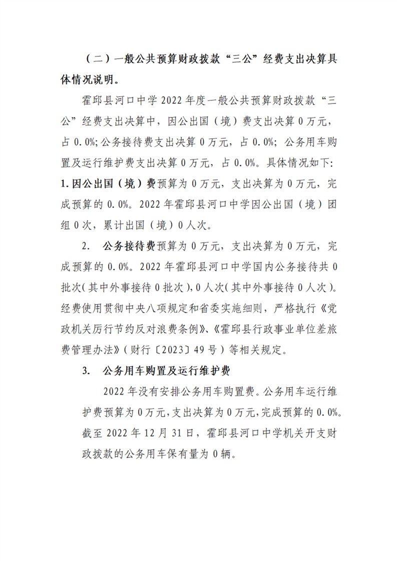 霍邱县河口中学2022年度一般公共预算财政拨款三公经费支出决算
