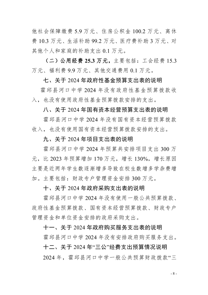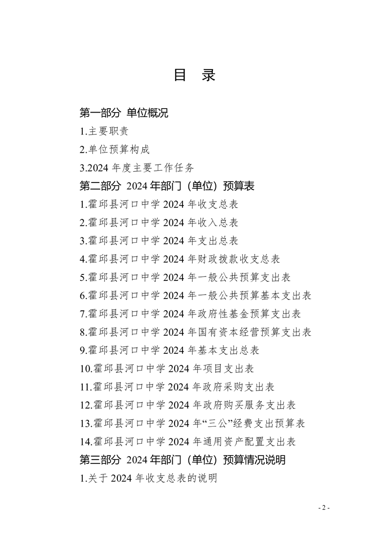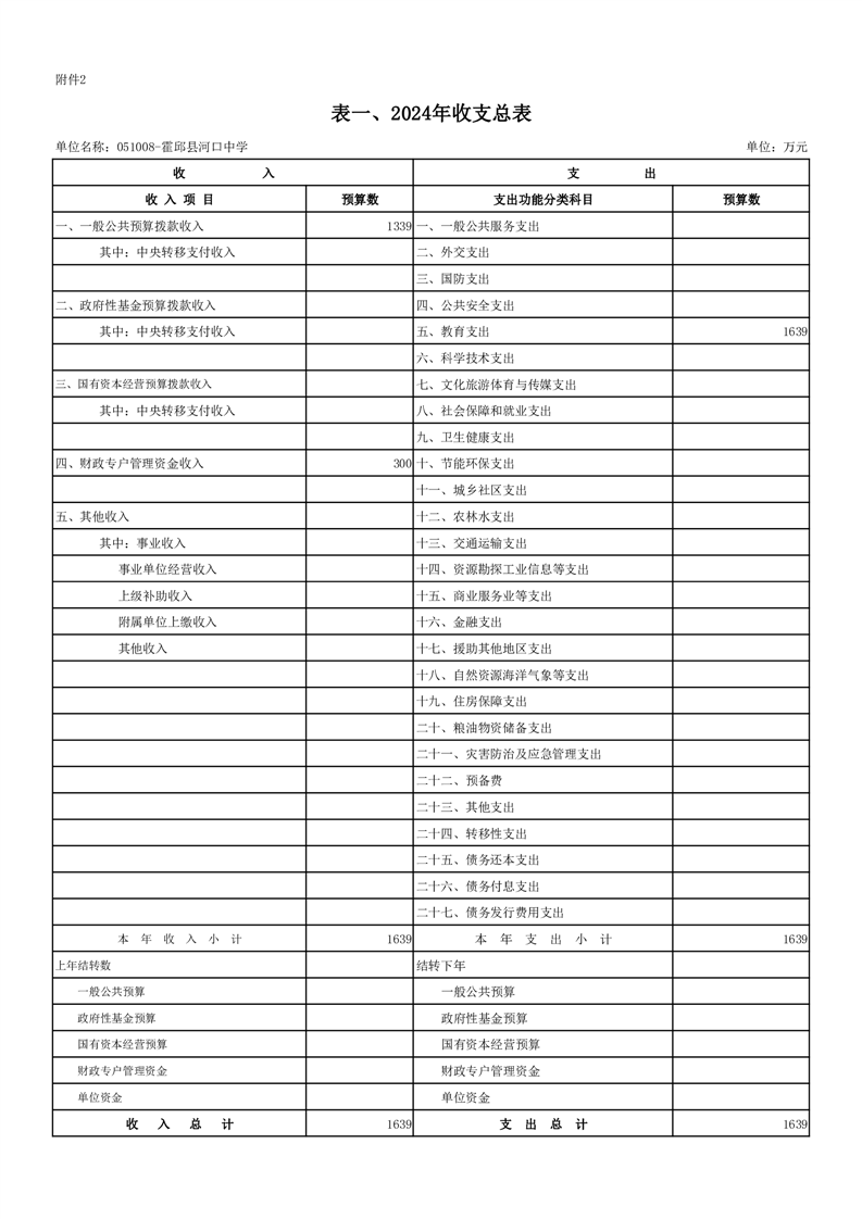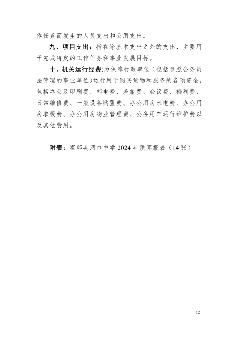 霍邱县河口中学2024 年单位预算公开