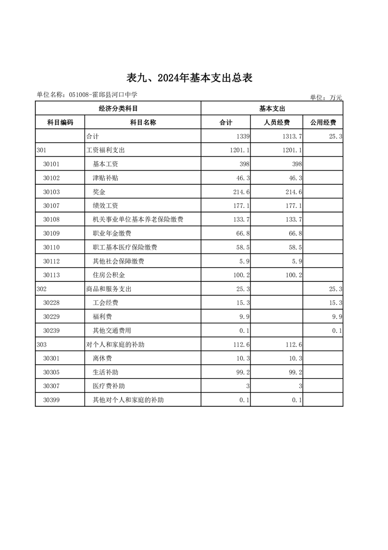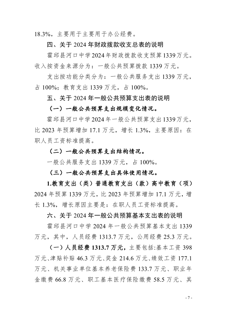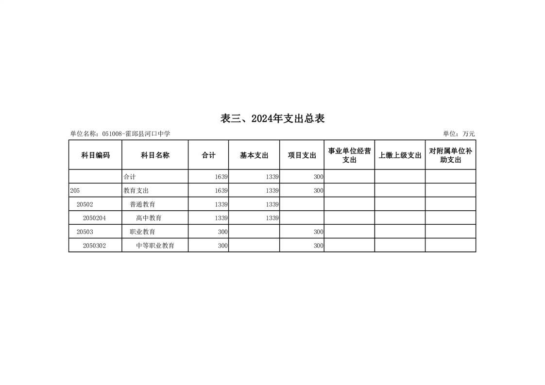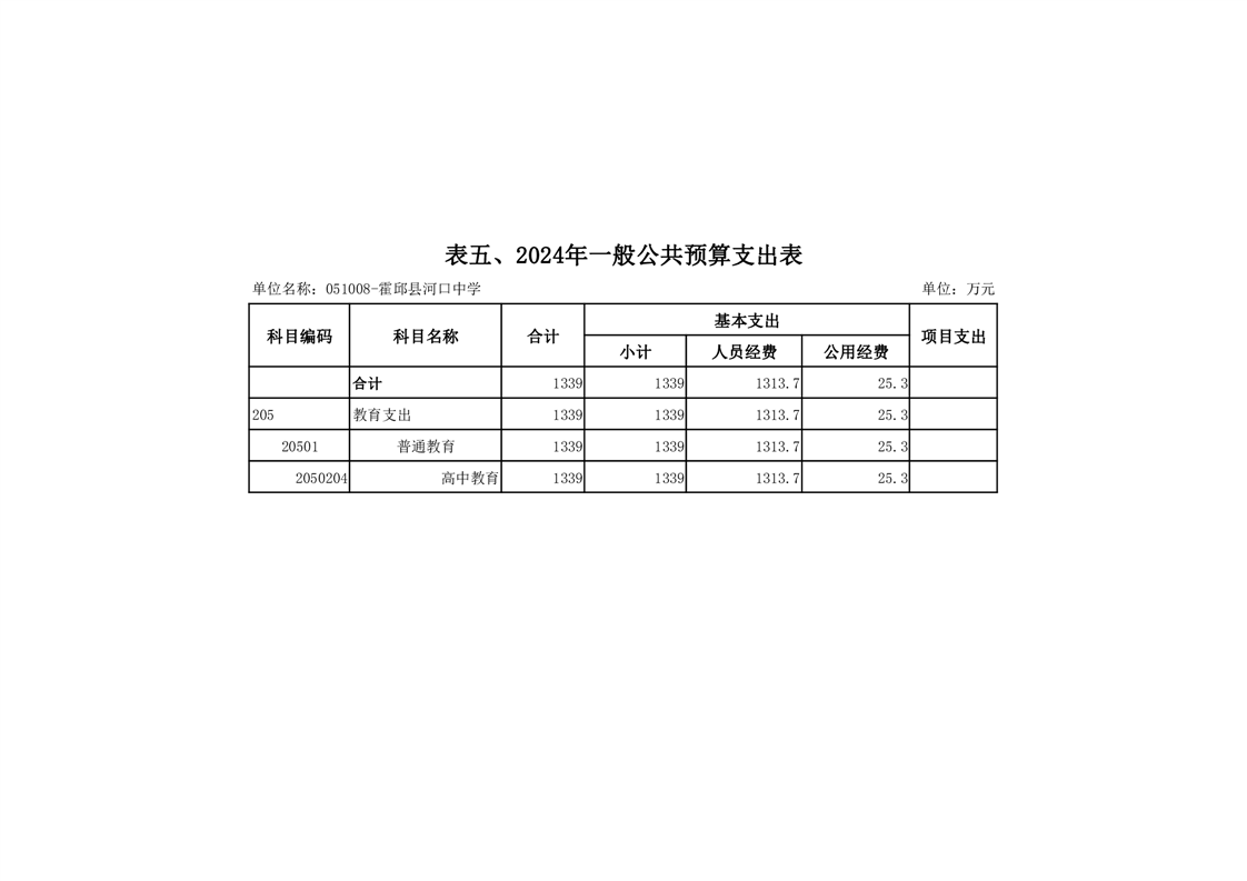 霍邱县河口中学2024 年单位预算公开