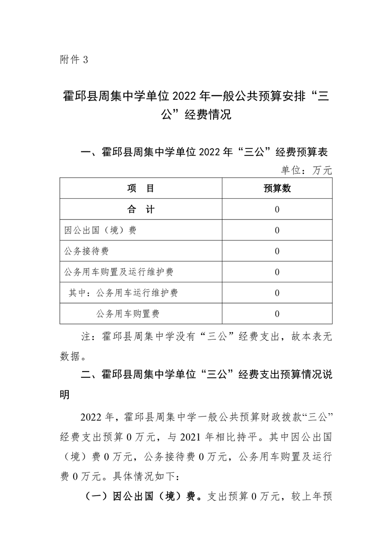 霍邱县周集中学2022年三公经费预算公开