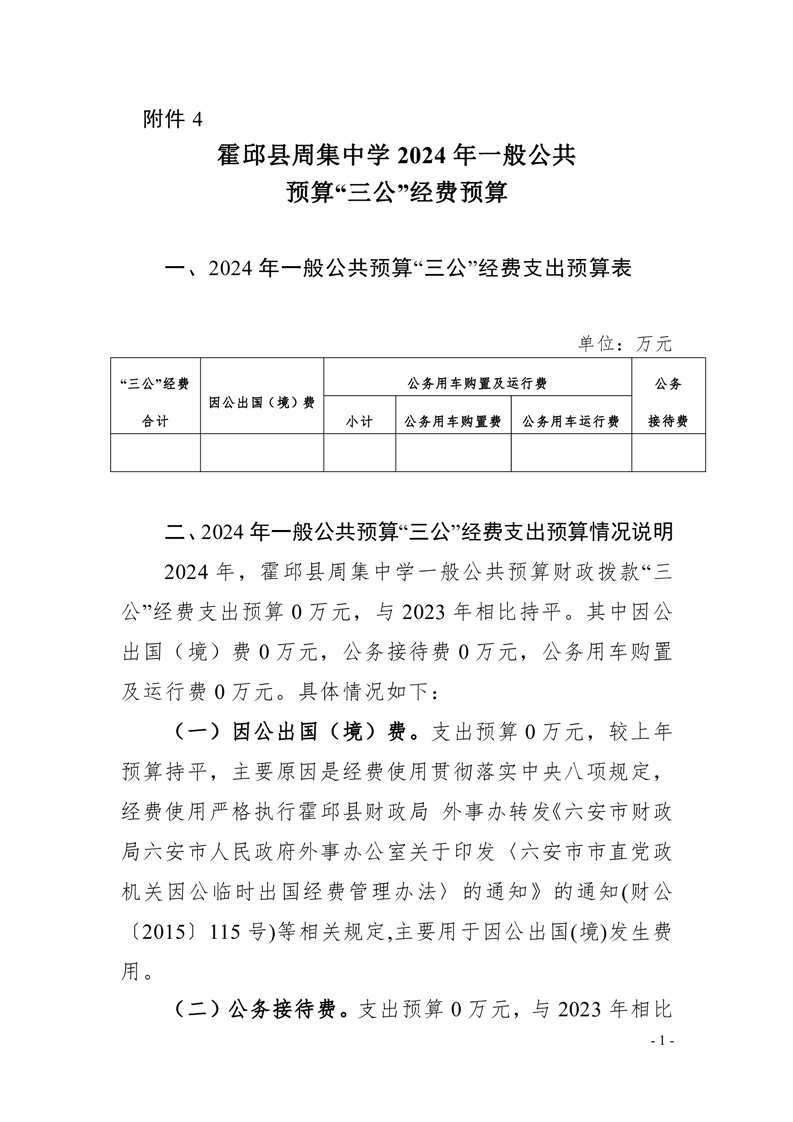 霍邱县周集中学 2024 年一般公共预算“三公”经费预算