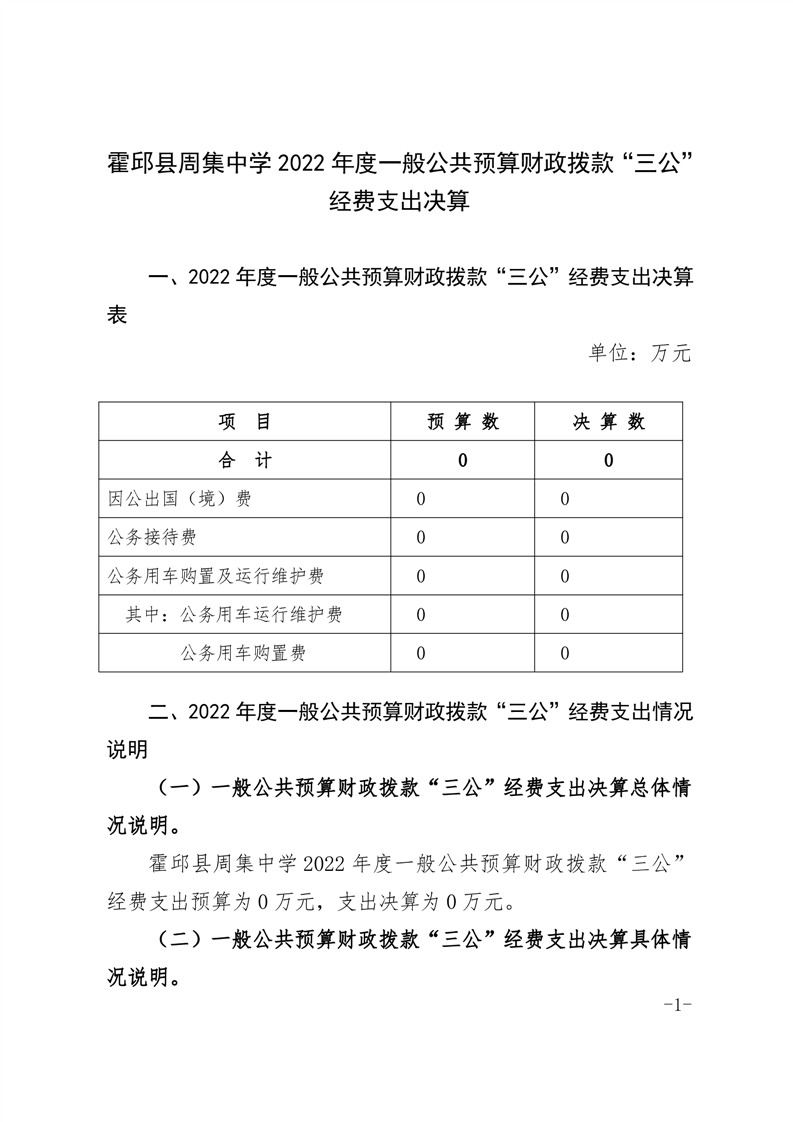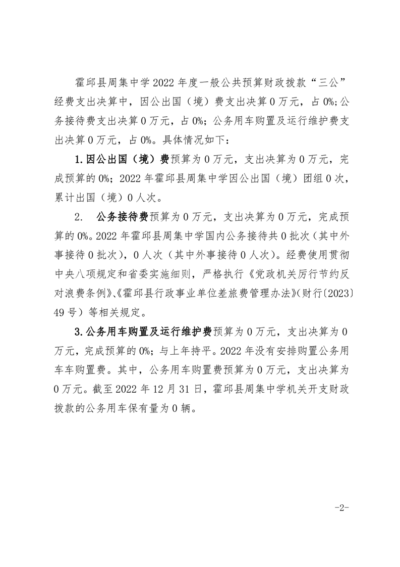 霍邱县周集中学 2022 年度一般公共预算财政拨款“三公”经费支出决算