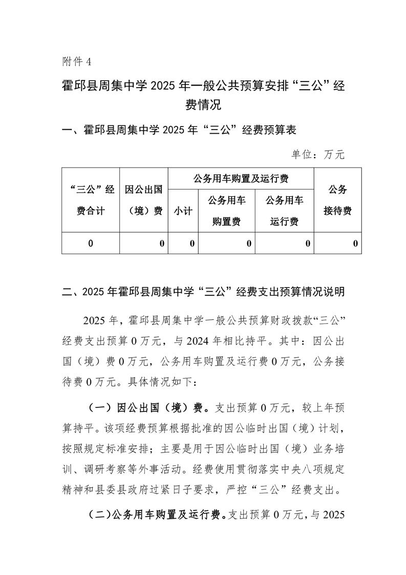 霍邱县周集中学 2025 年一般公共预算安排“三公” 经费情况