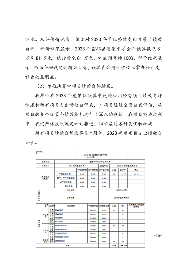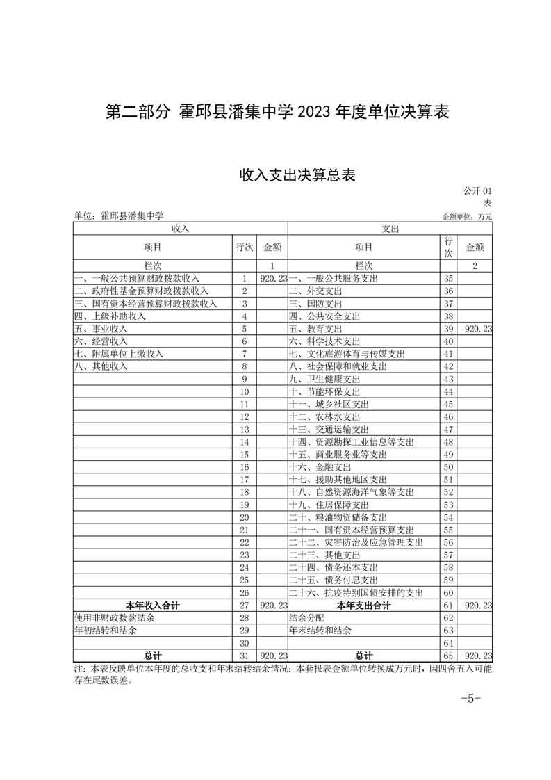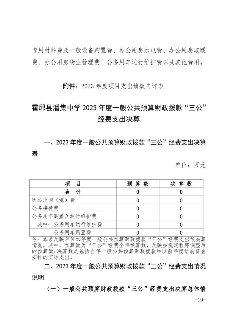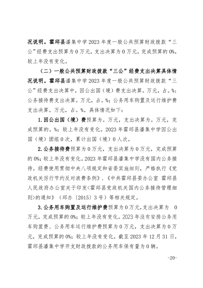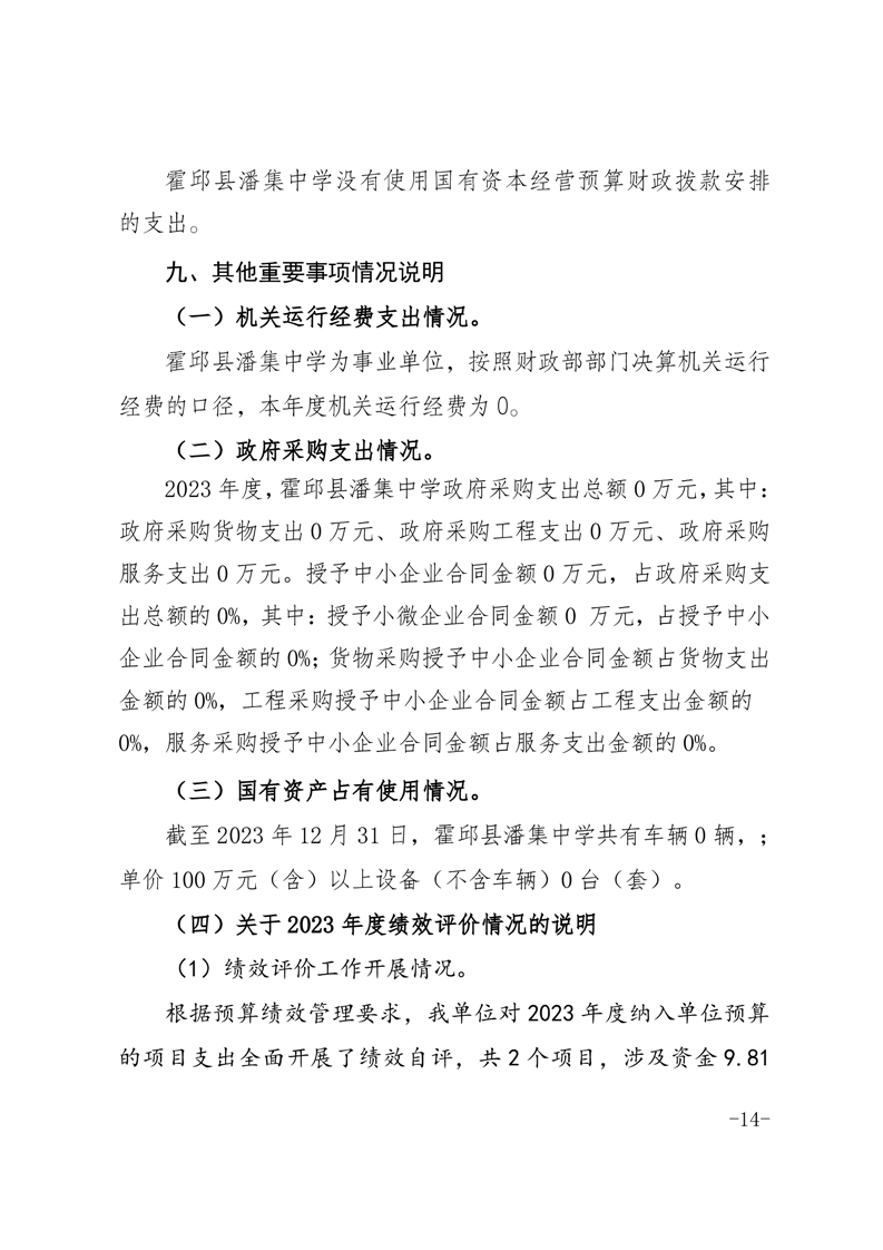 霍邱县潘集中学 2023 年度单位决算