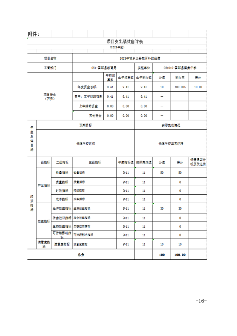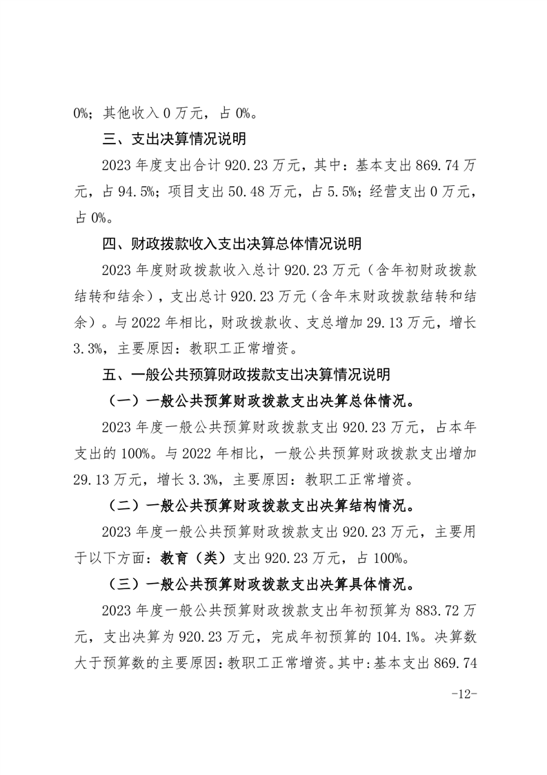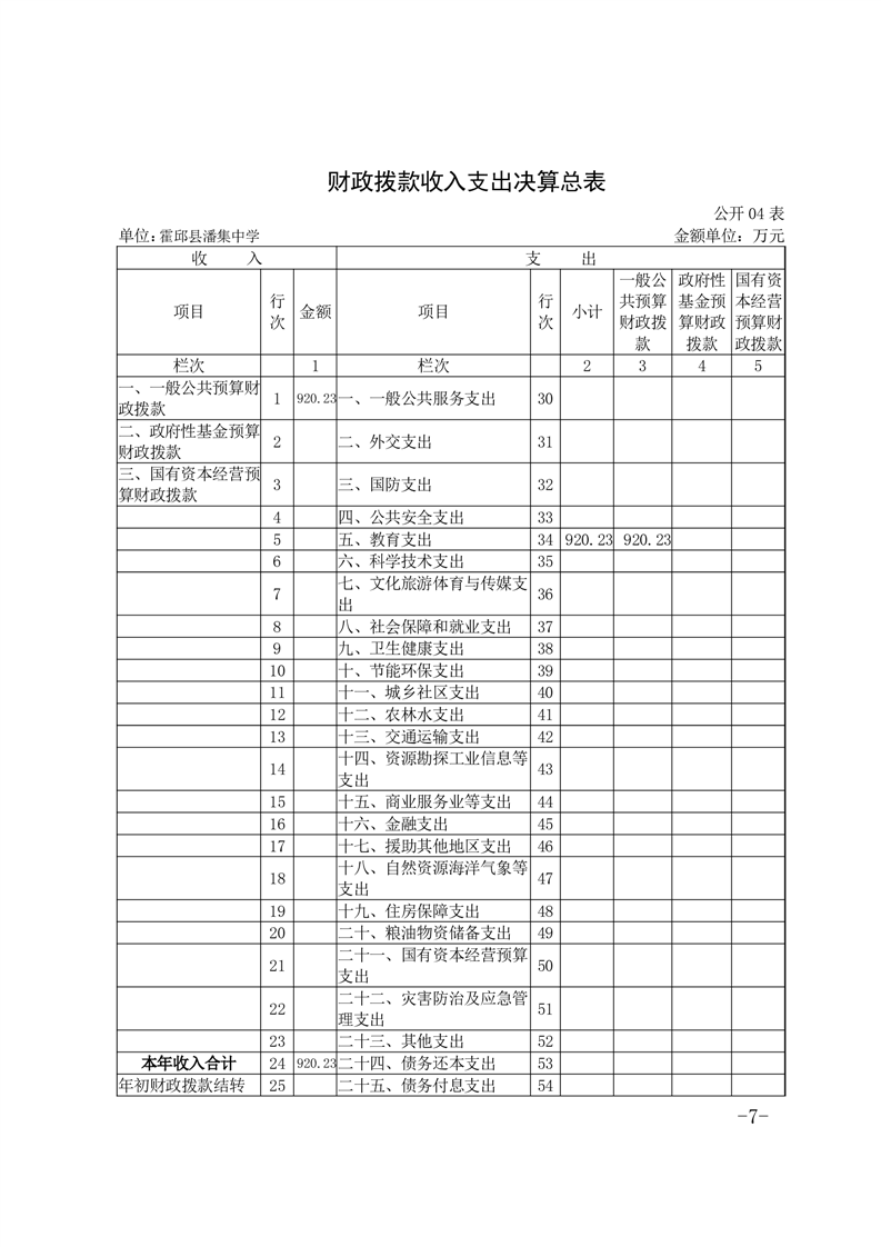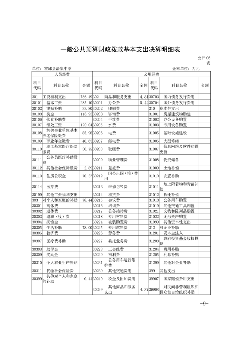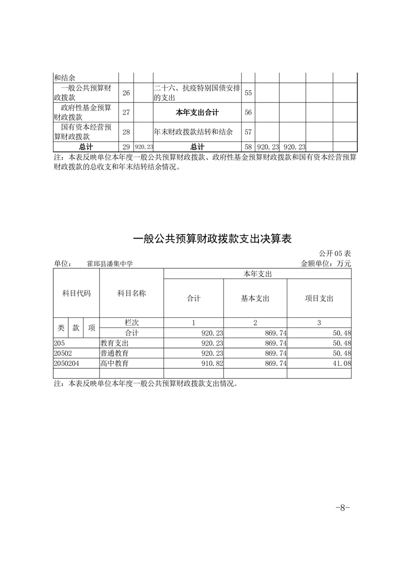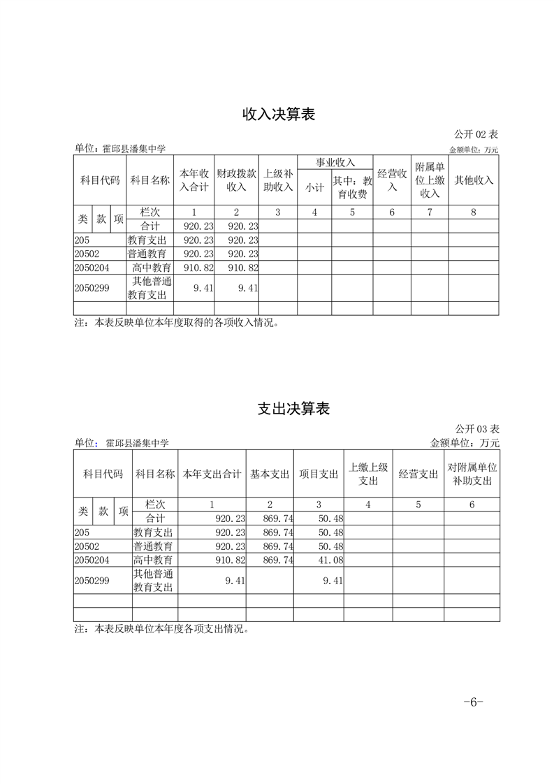 霍邱县潘集中学 2023 年度单位决算