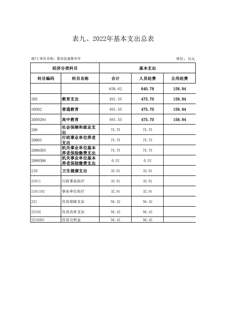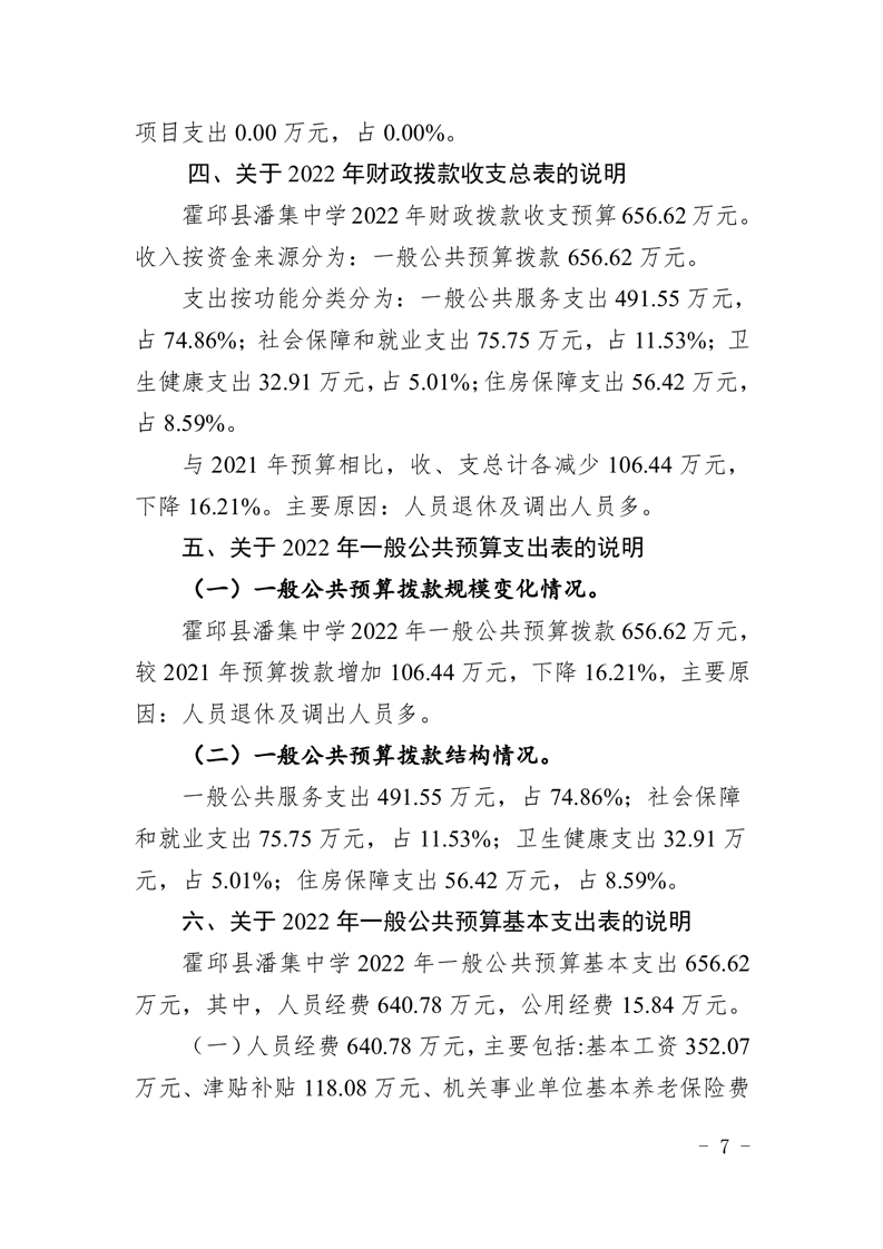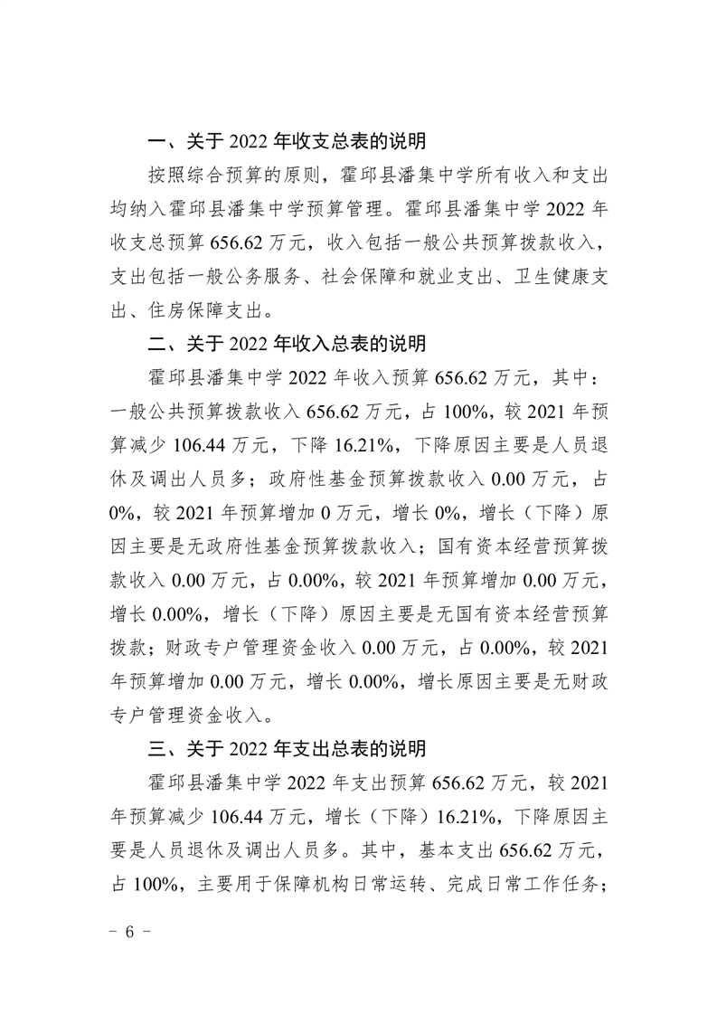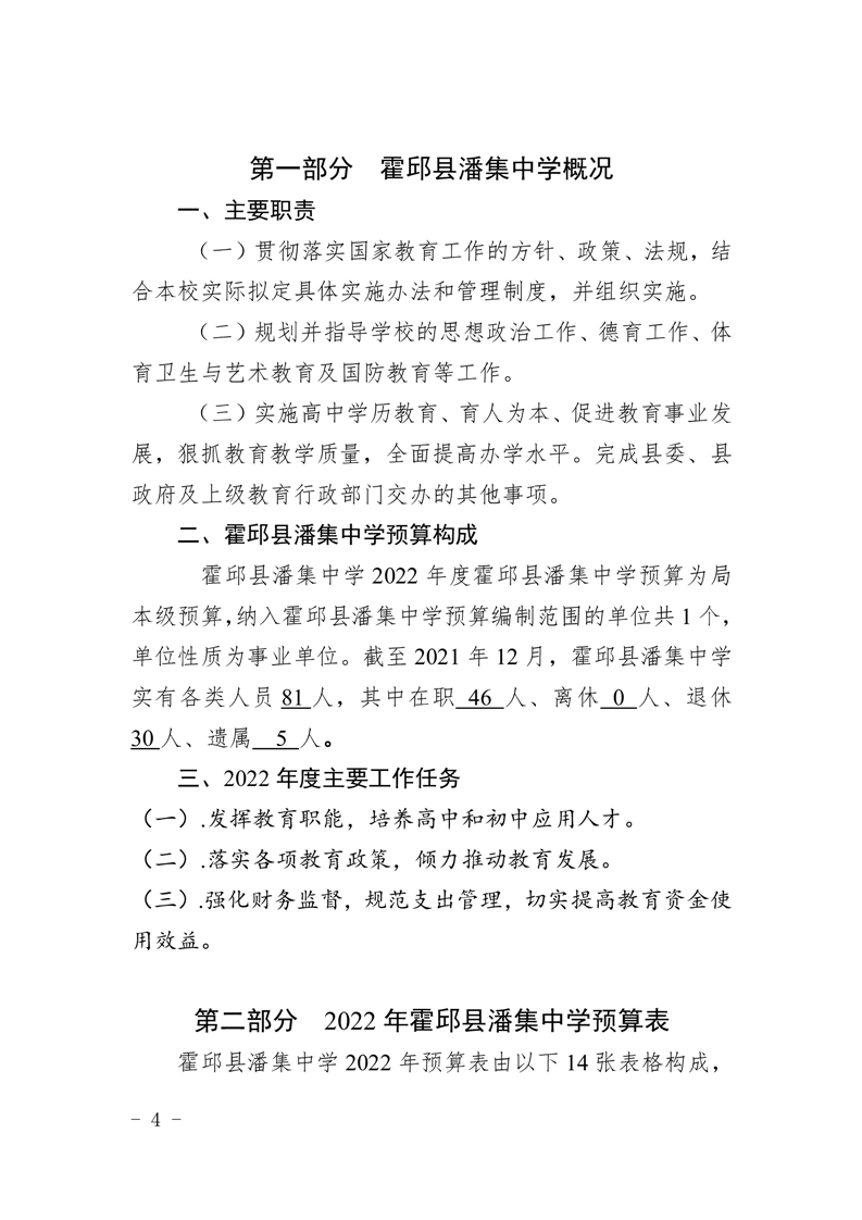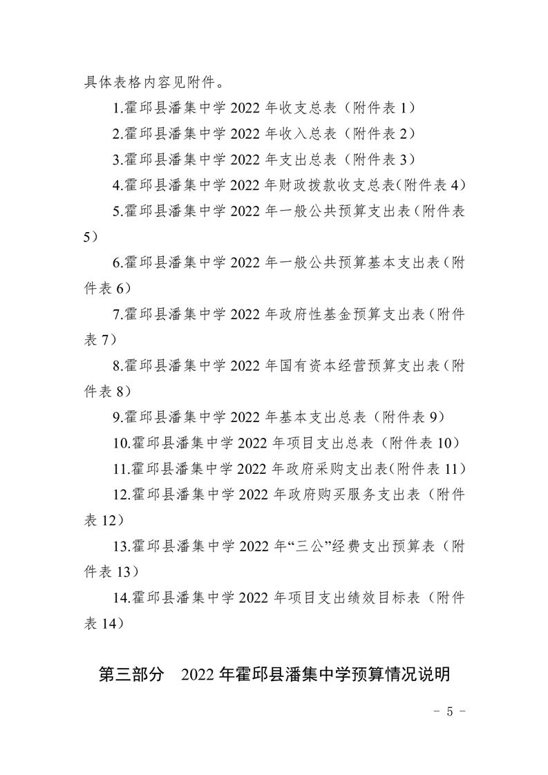 霍邱县潘集中学2022 年霍邱县潘集中学预算公开