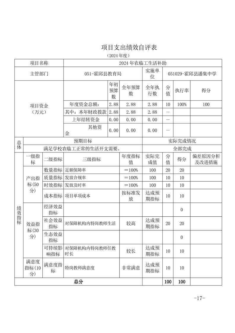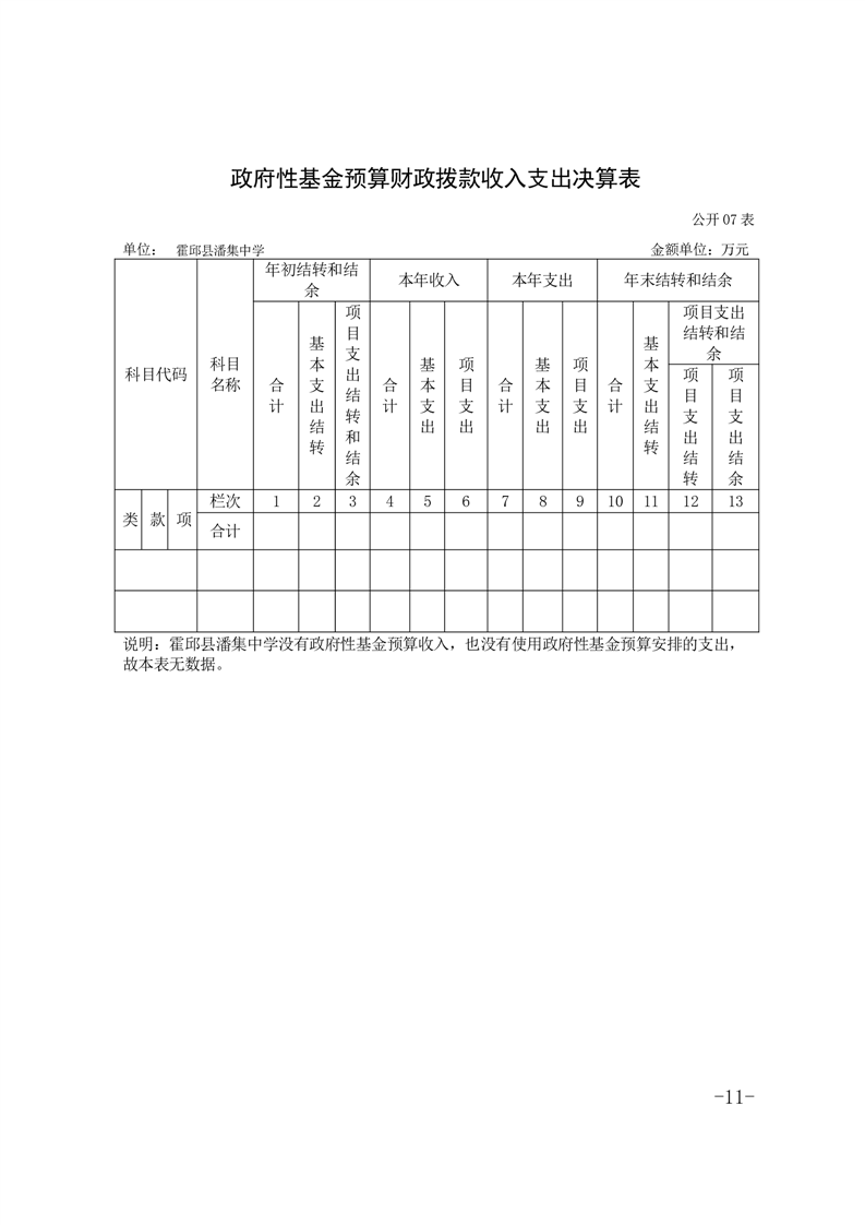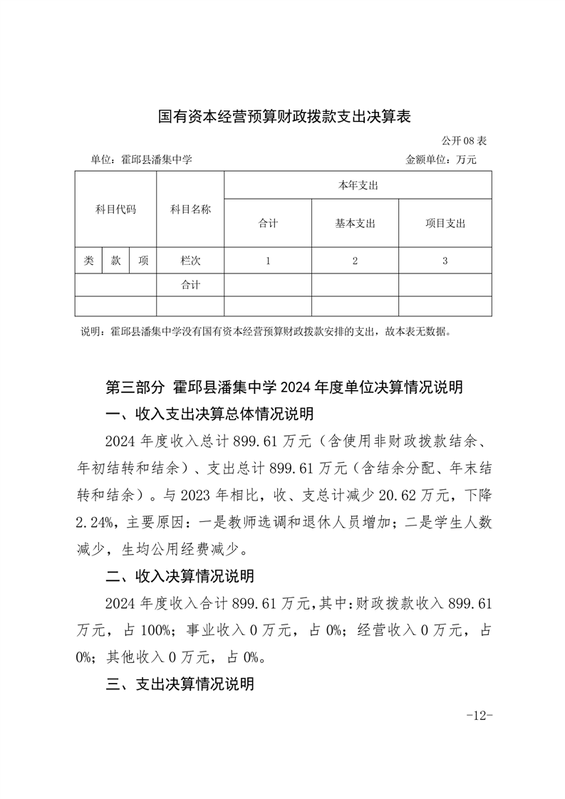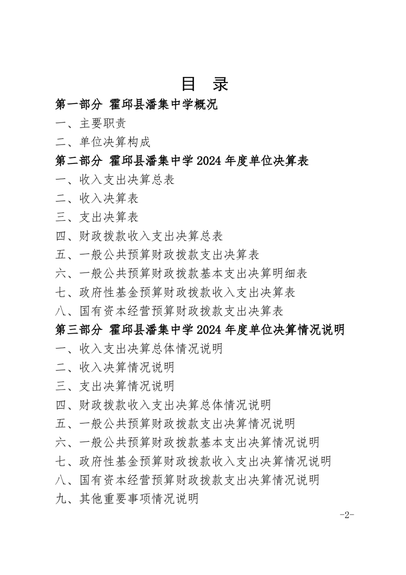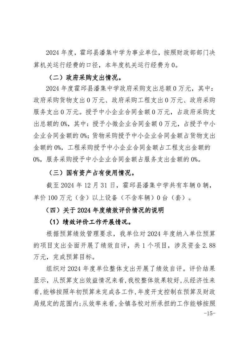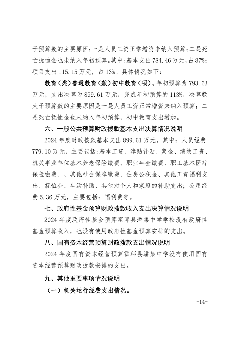 霍邱县潘集中学2024年度单位决算