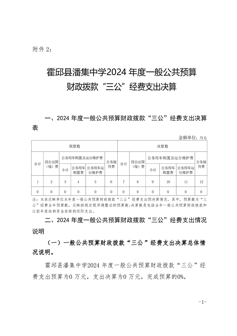 霍邱县潘集中学2024 年度一般公共预算财政拨款“三公”经费支出决算