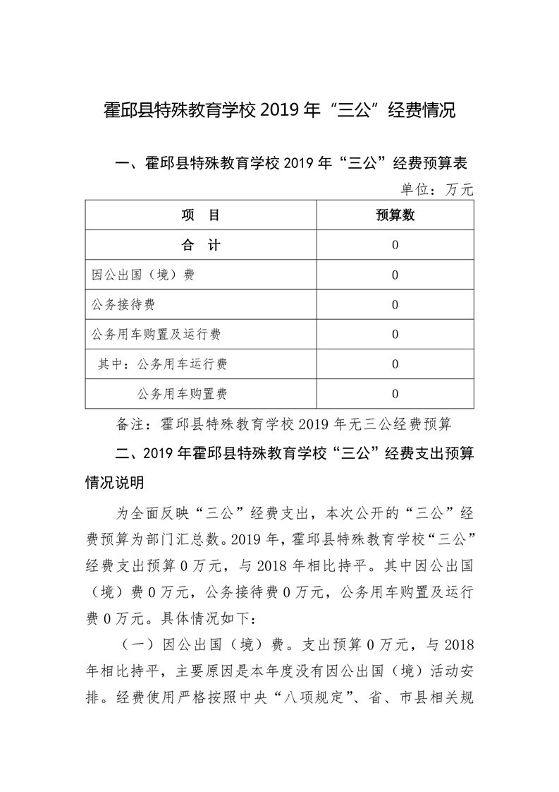 霍邱特校2019“三公经费”预算公开