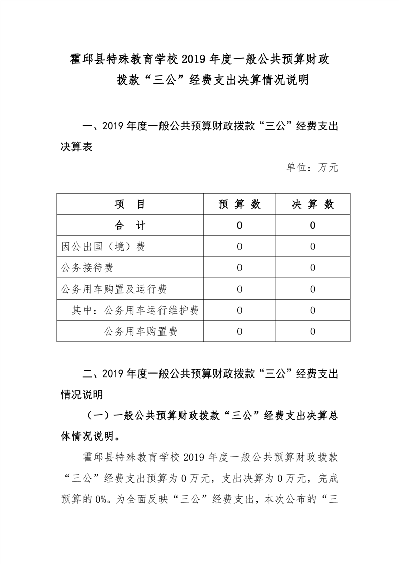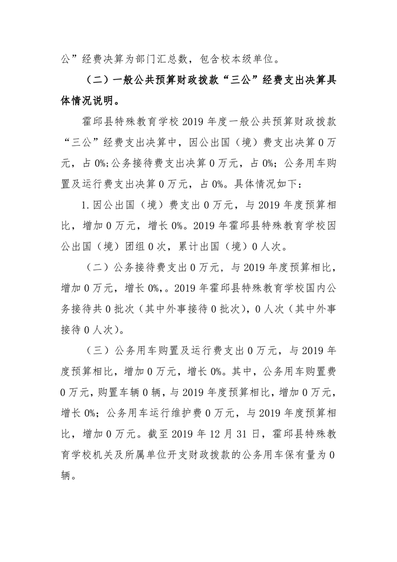 2019年霍邱县特殊教育学校“三公”经费决算公开