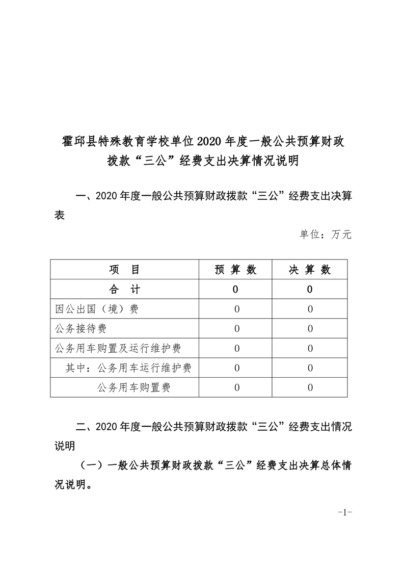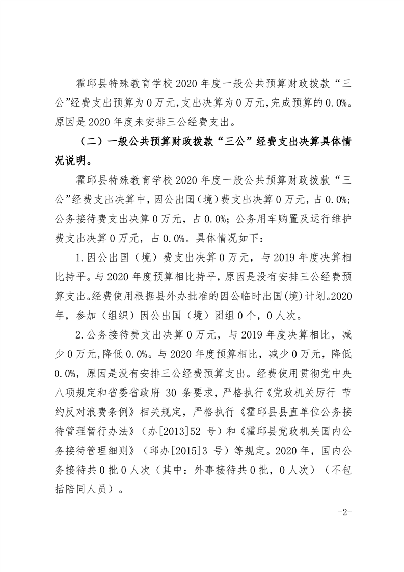 2020年霍邱县特殊教育学校“三公”经费决算公开
