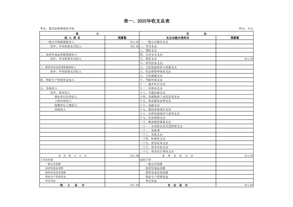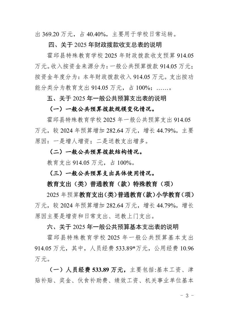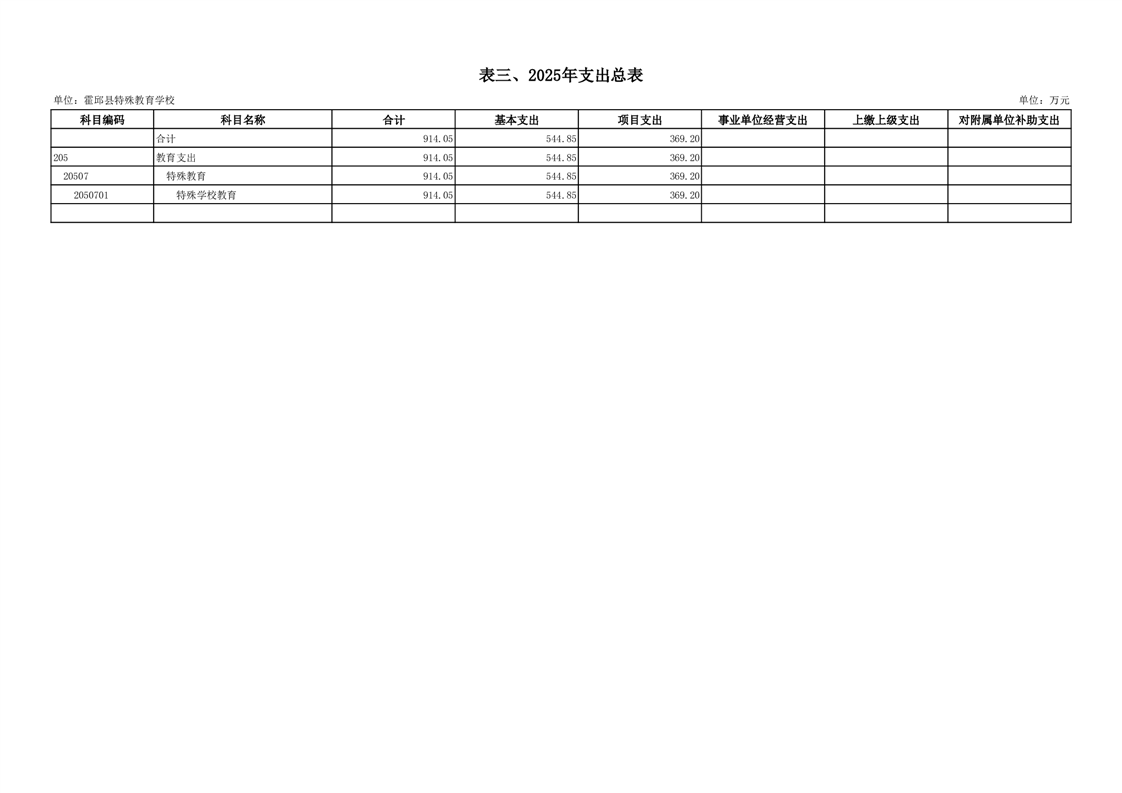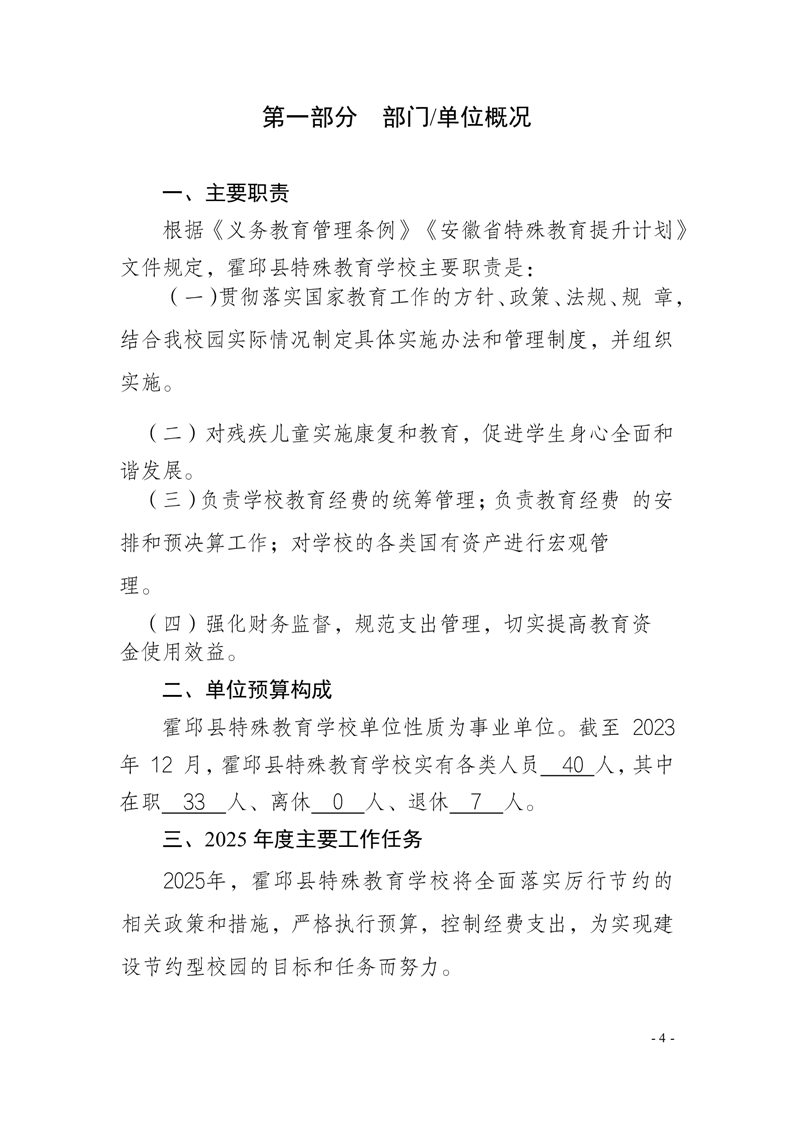 霍邱县特殊教育学校2025 年单位预算