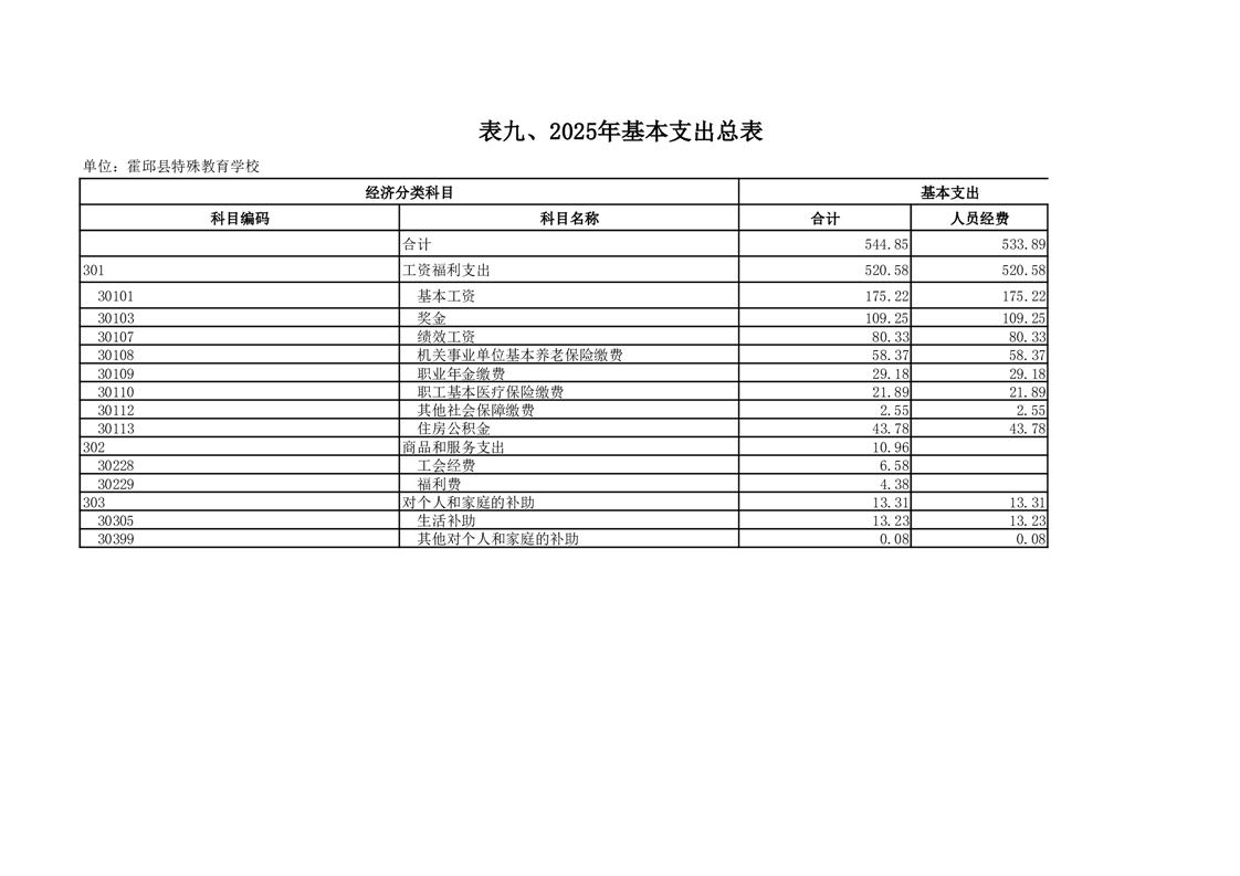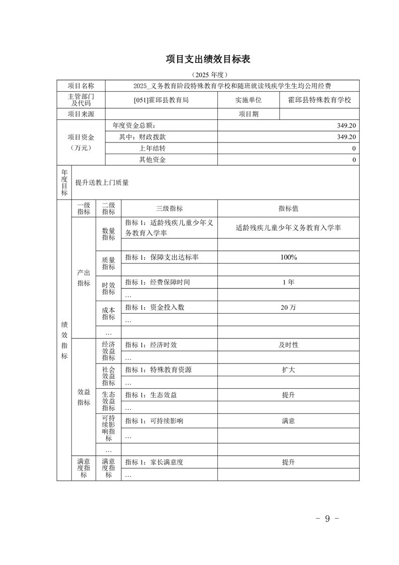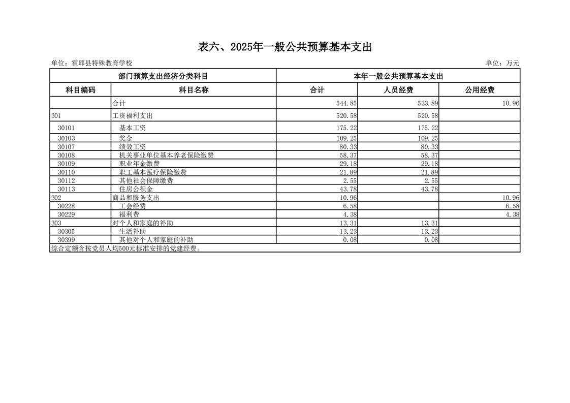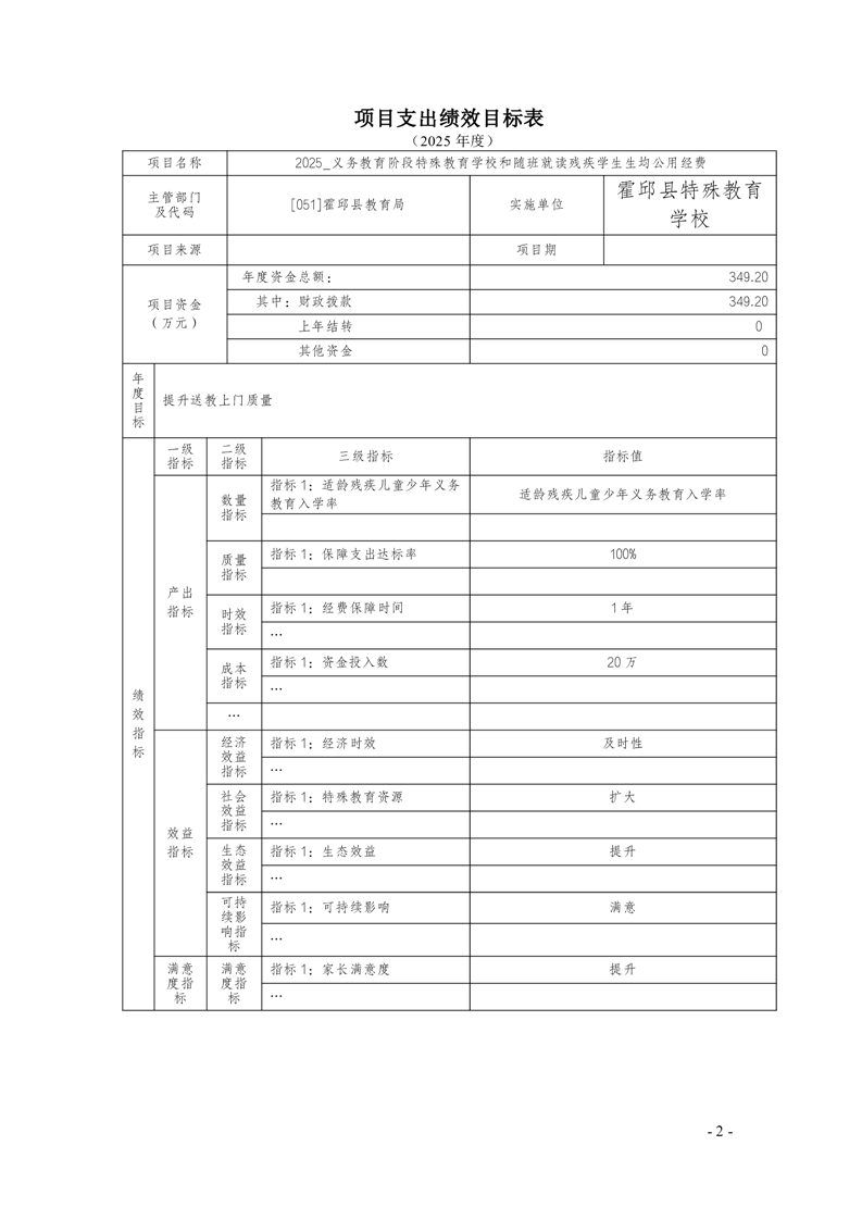 霍邱县特殊教育学校2025 年单位预算