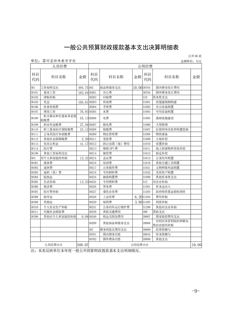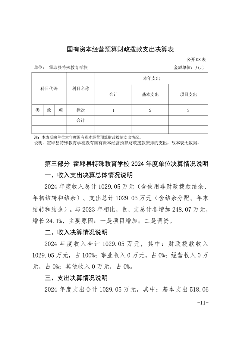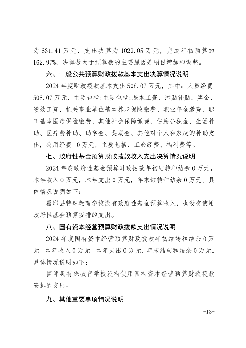 霍邱县特殊教育学校 2024 年度单位决算