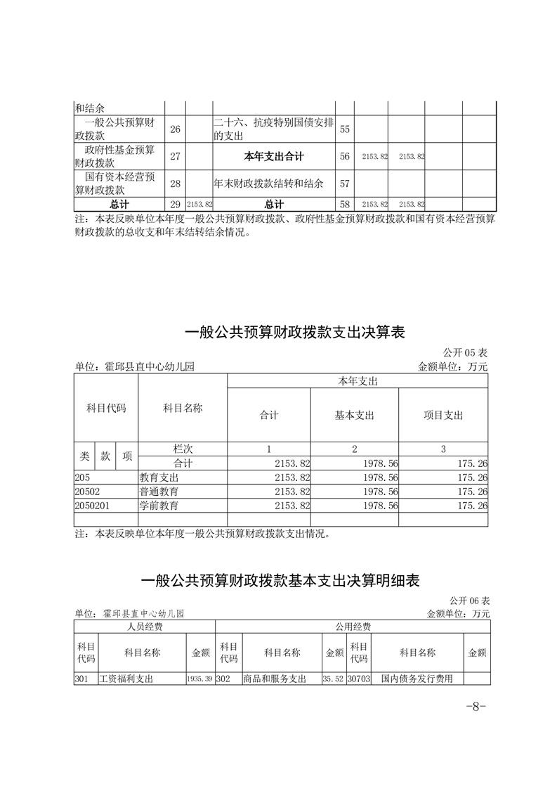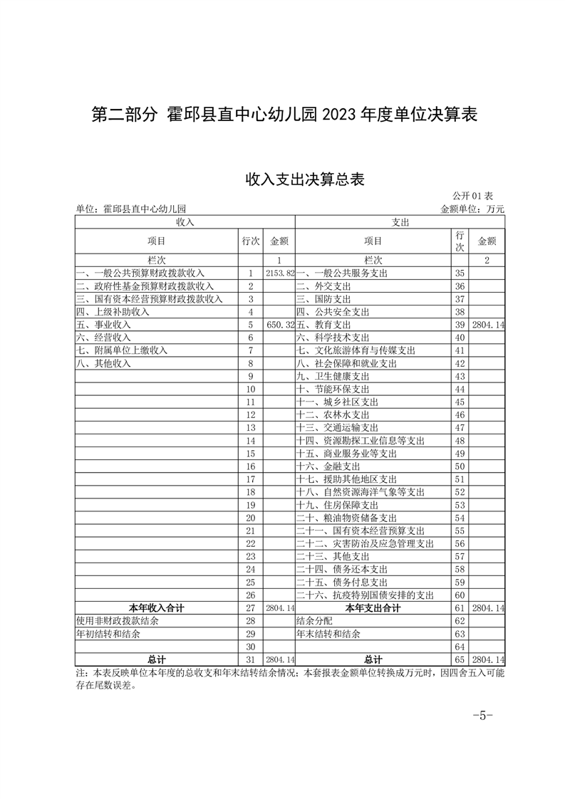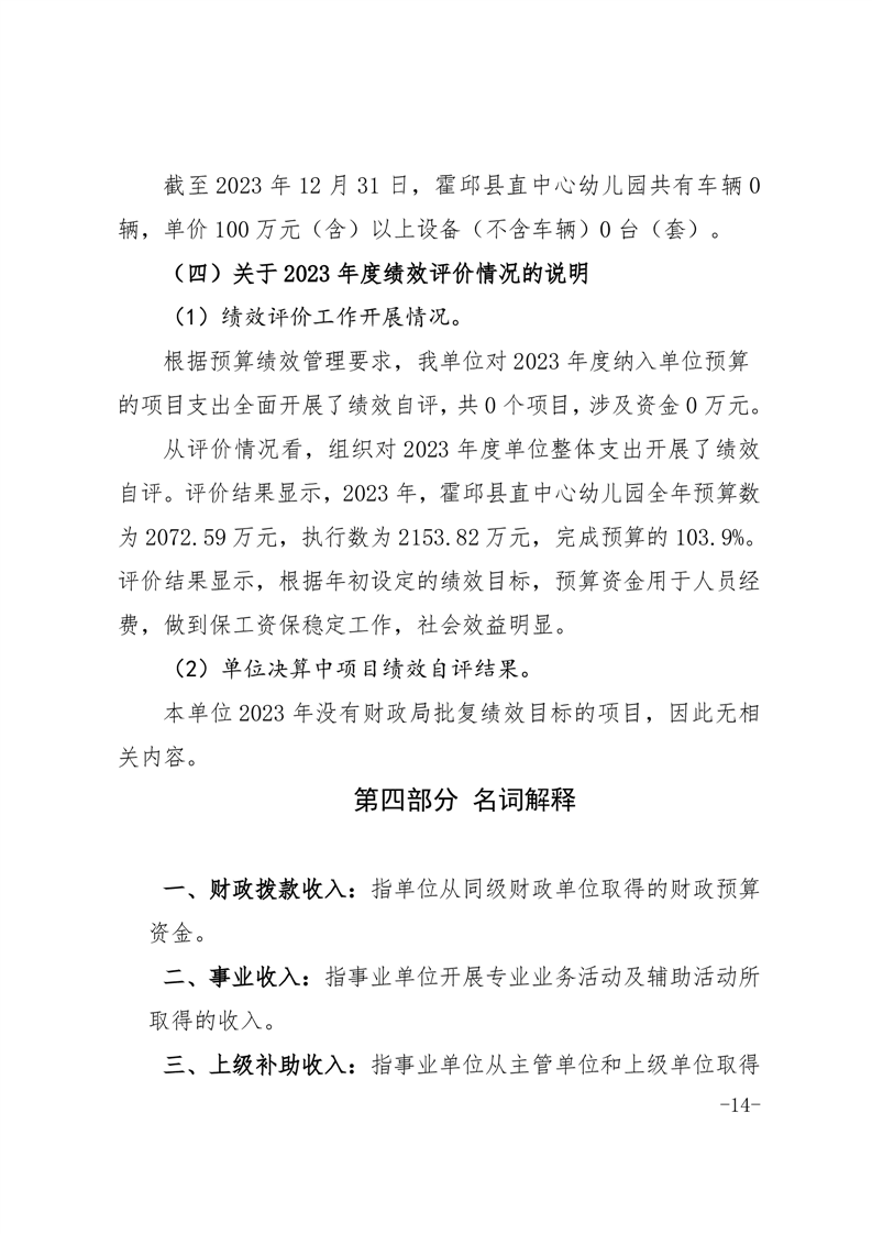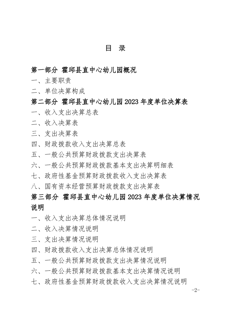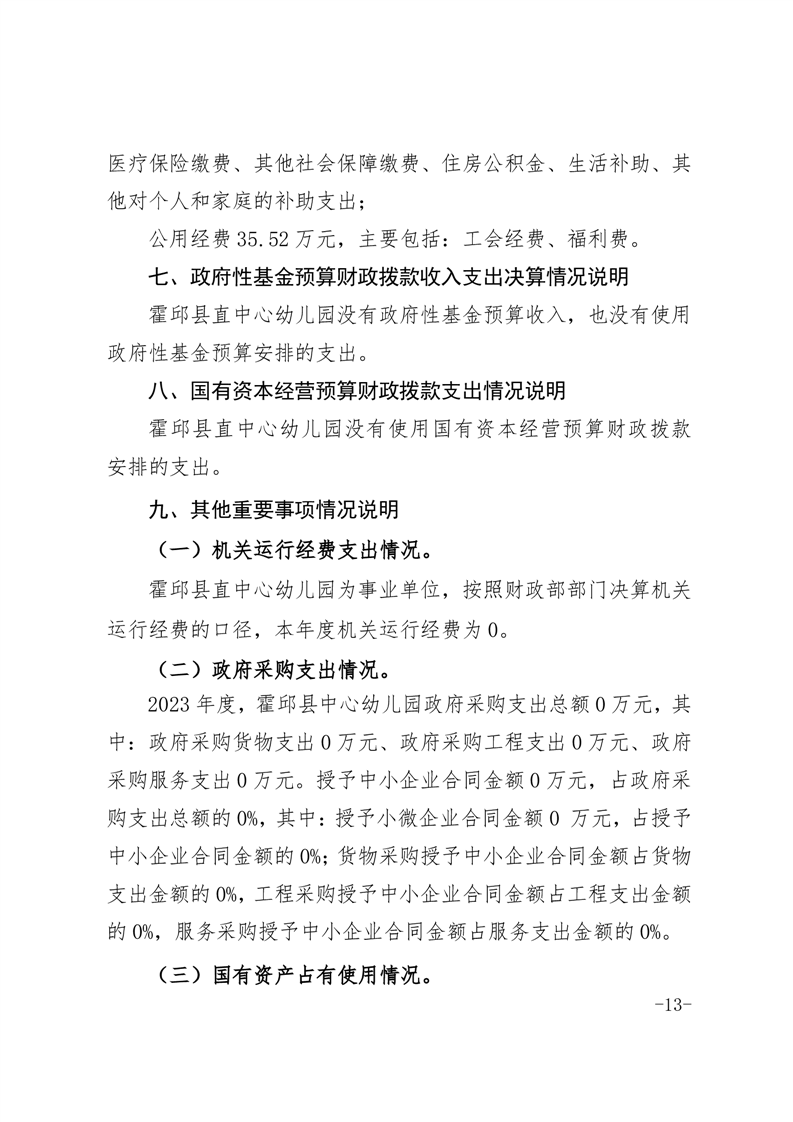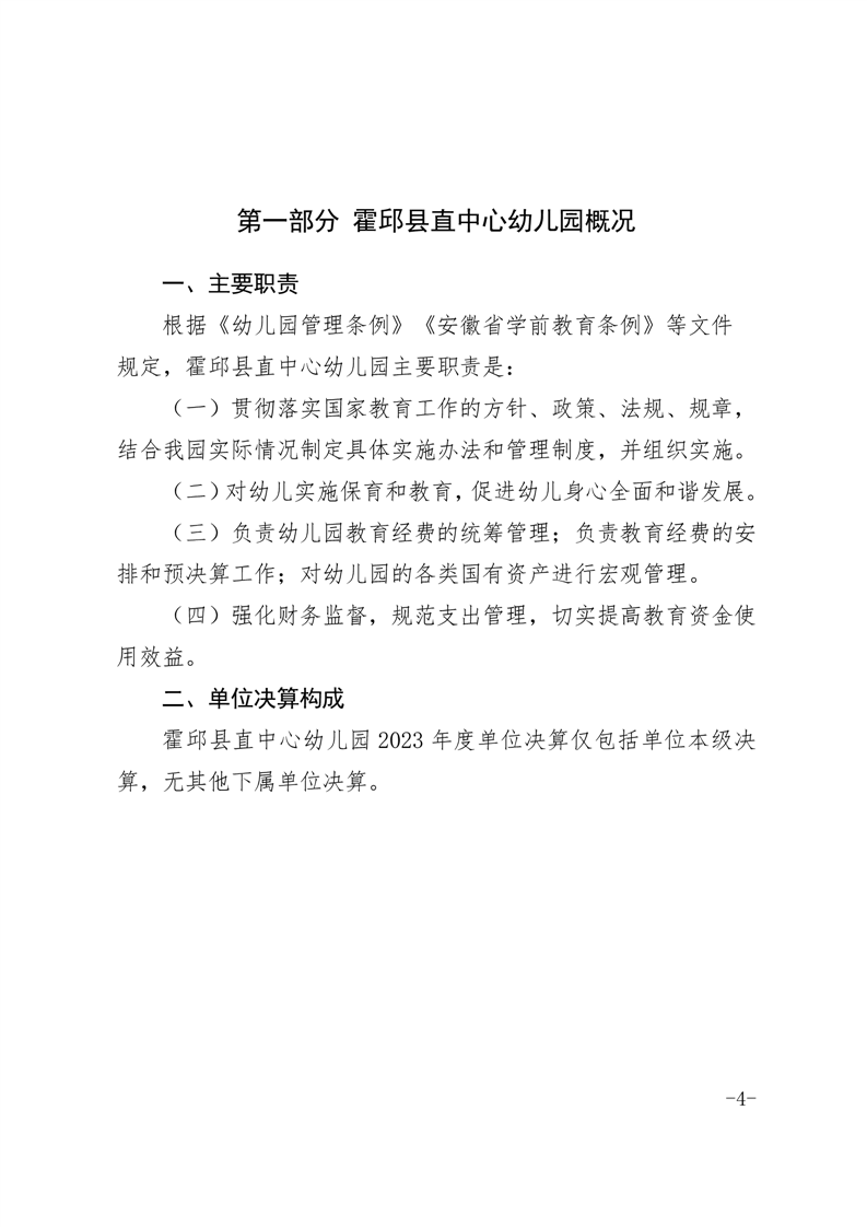 霍邱县直中心幼儿园 2023 年度单位决算