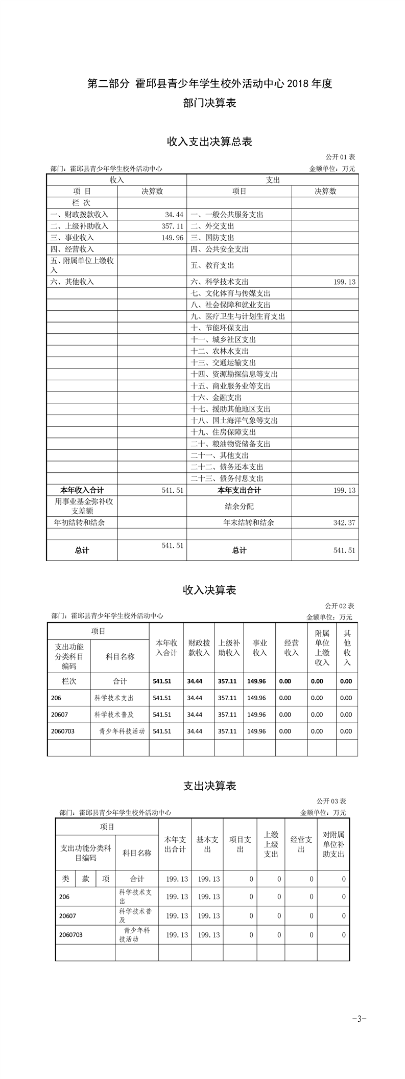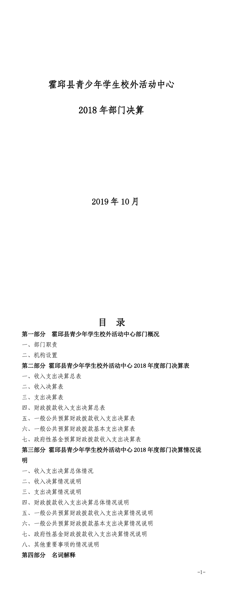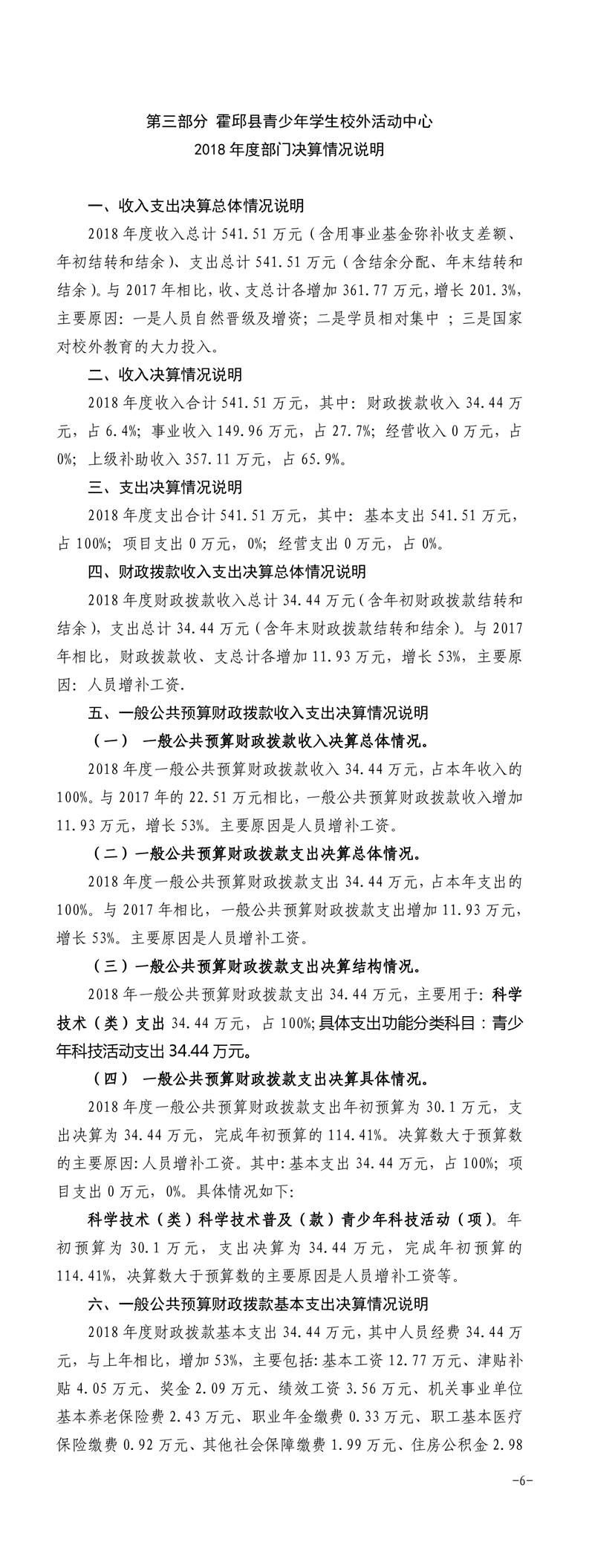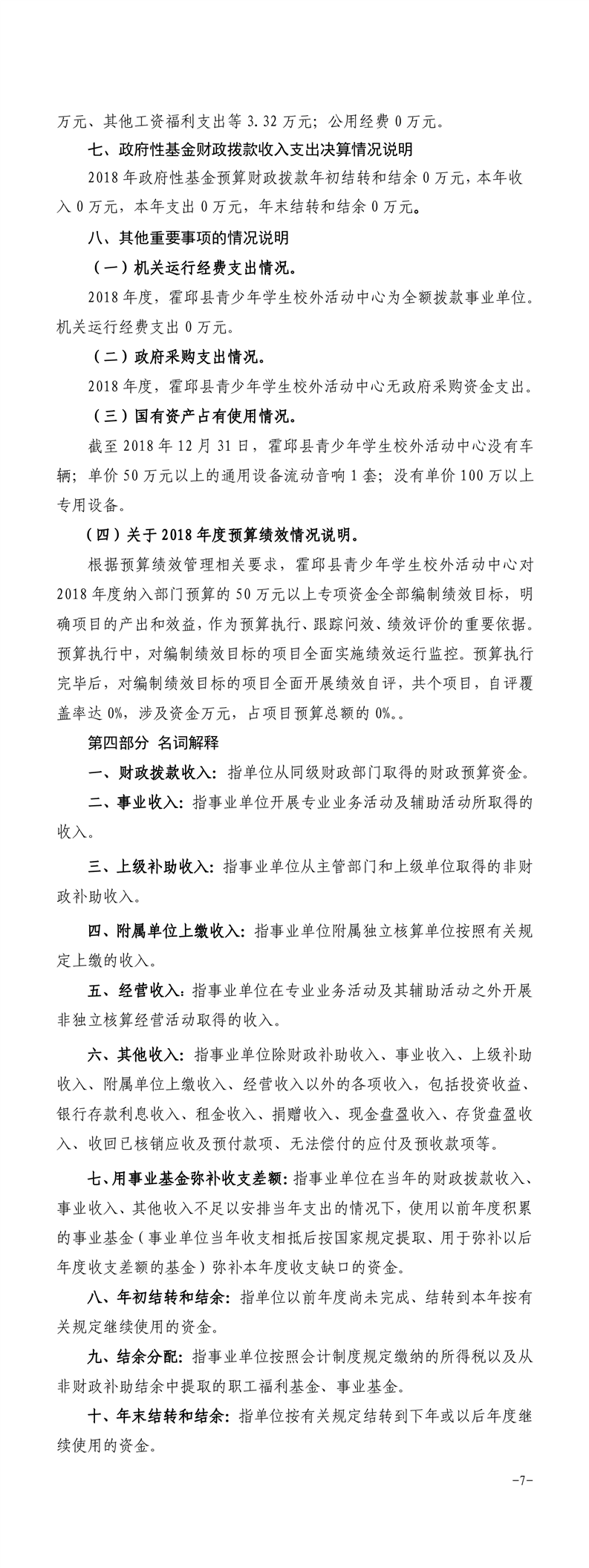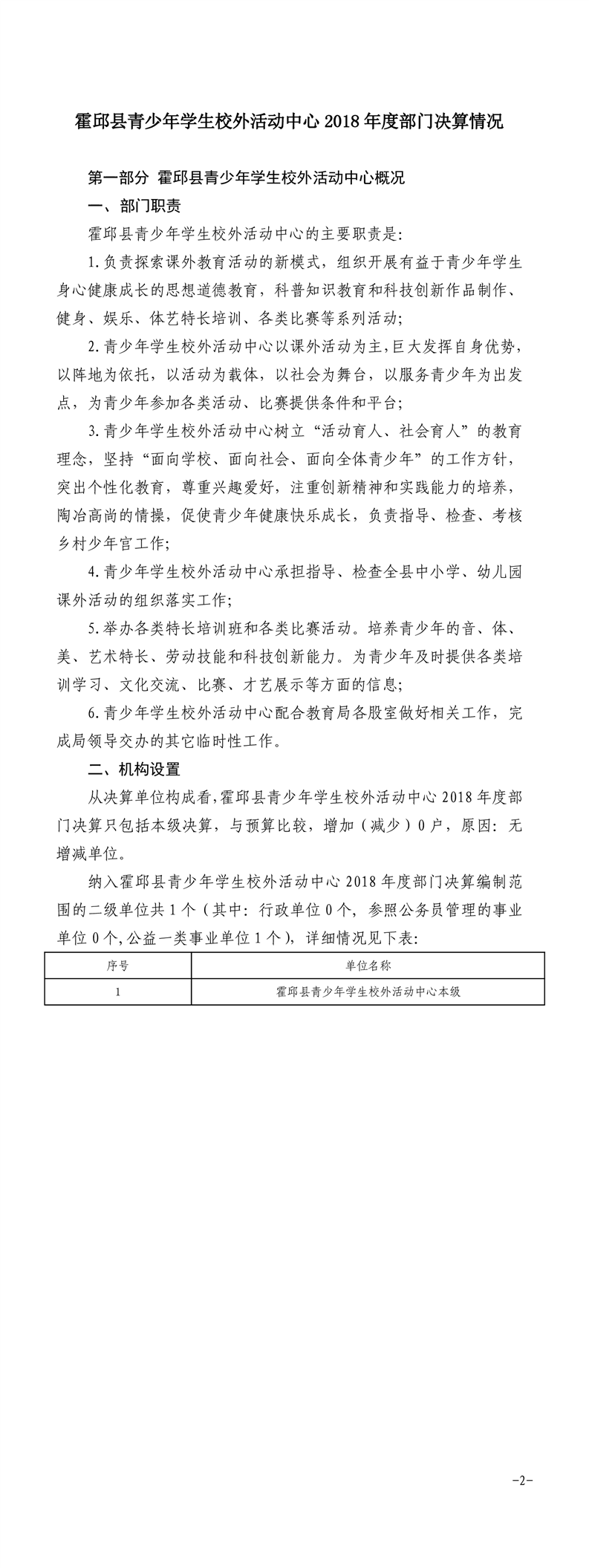 霍邱县青少年学生校外活动中心2018年度部门决算公开