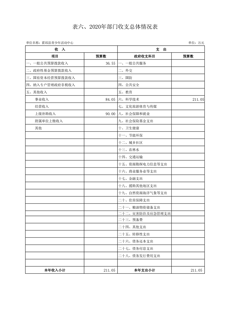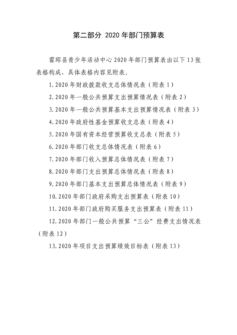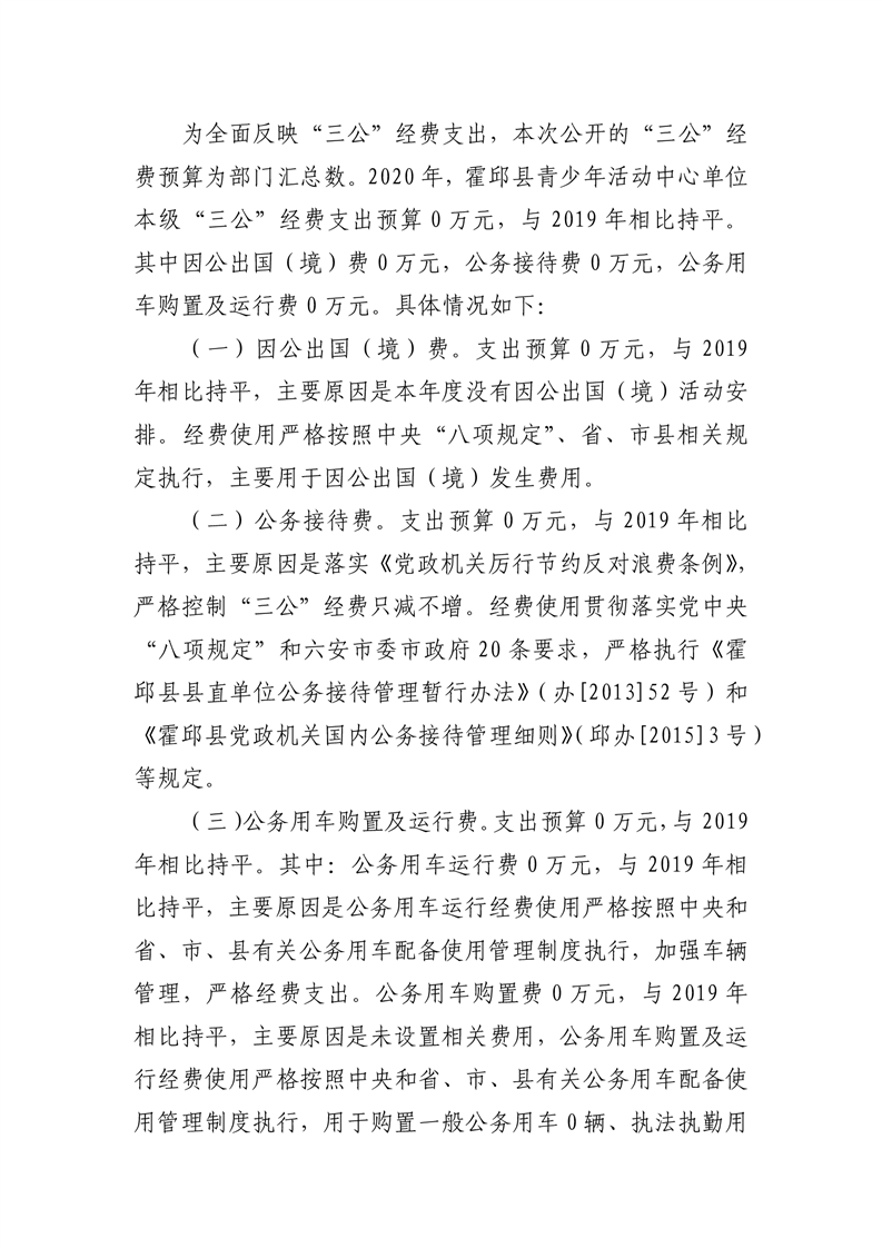 霍邱县青少年学生校外活动中心2020年部门预算公开