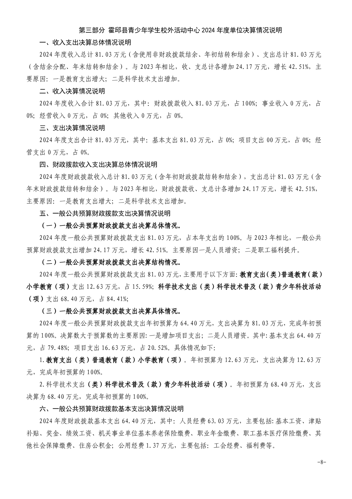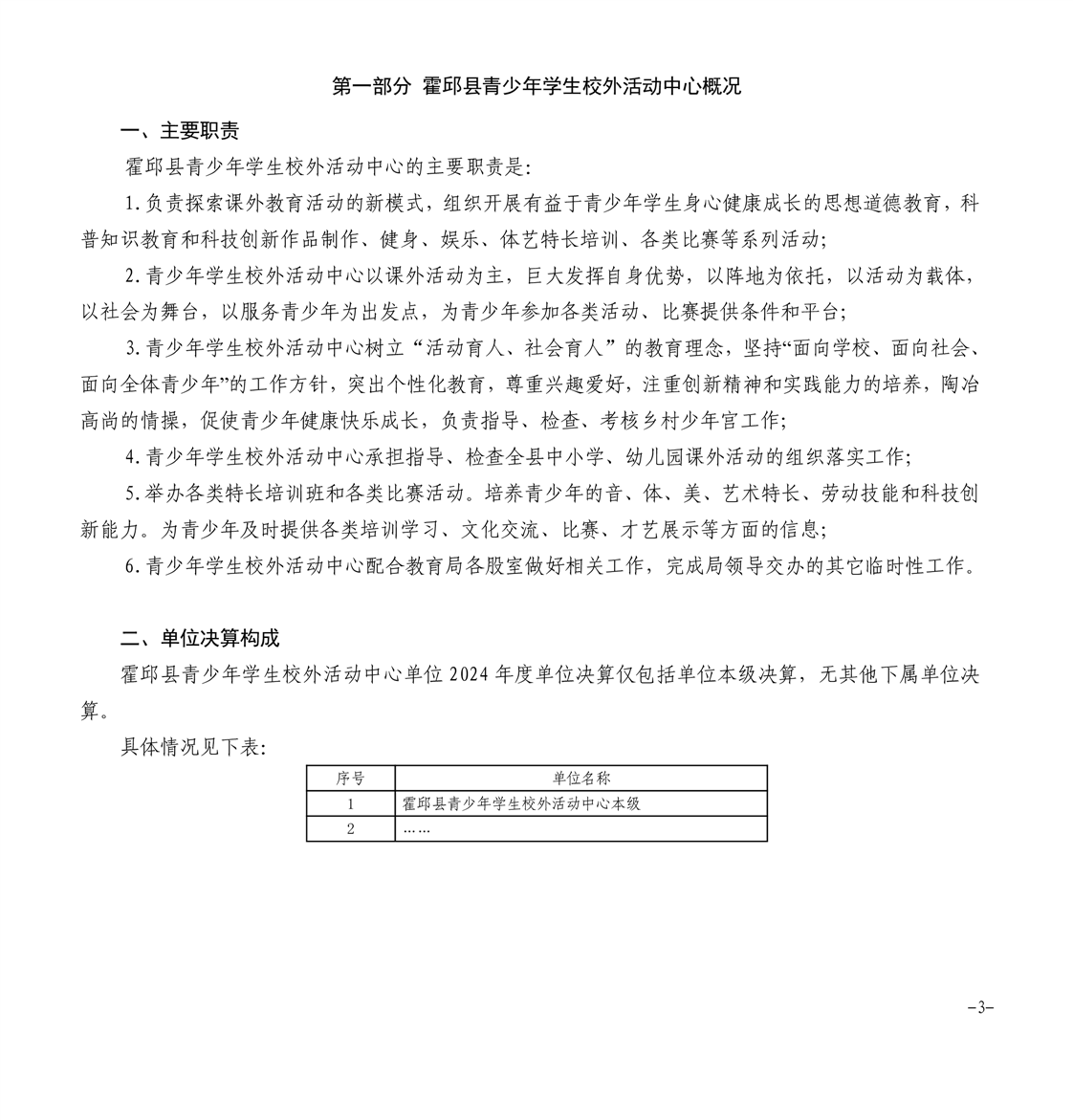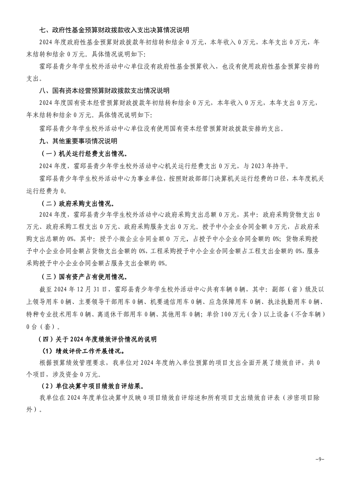 霍邱县青少年学生校外活动中心 2024 年度单位决算