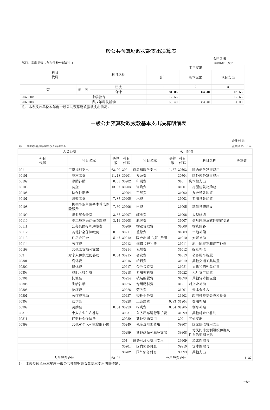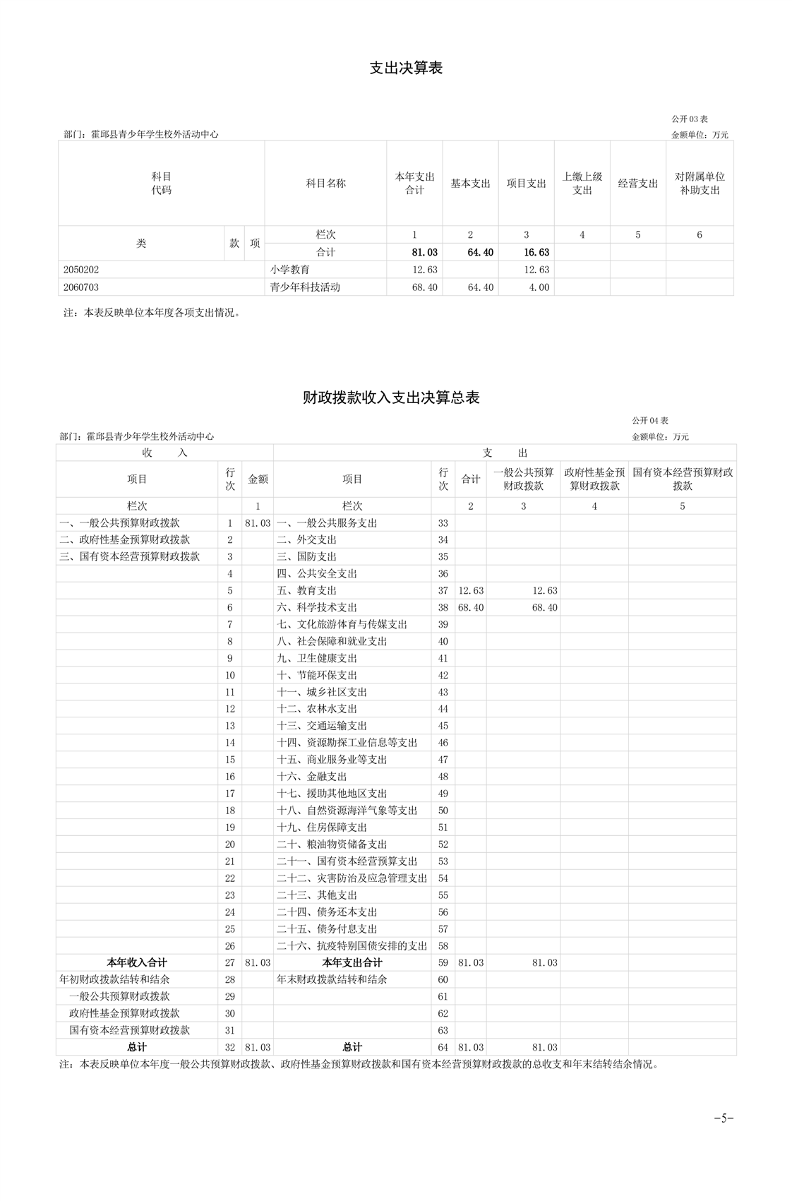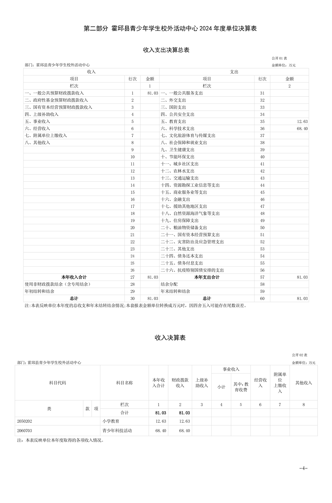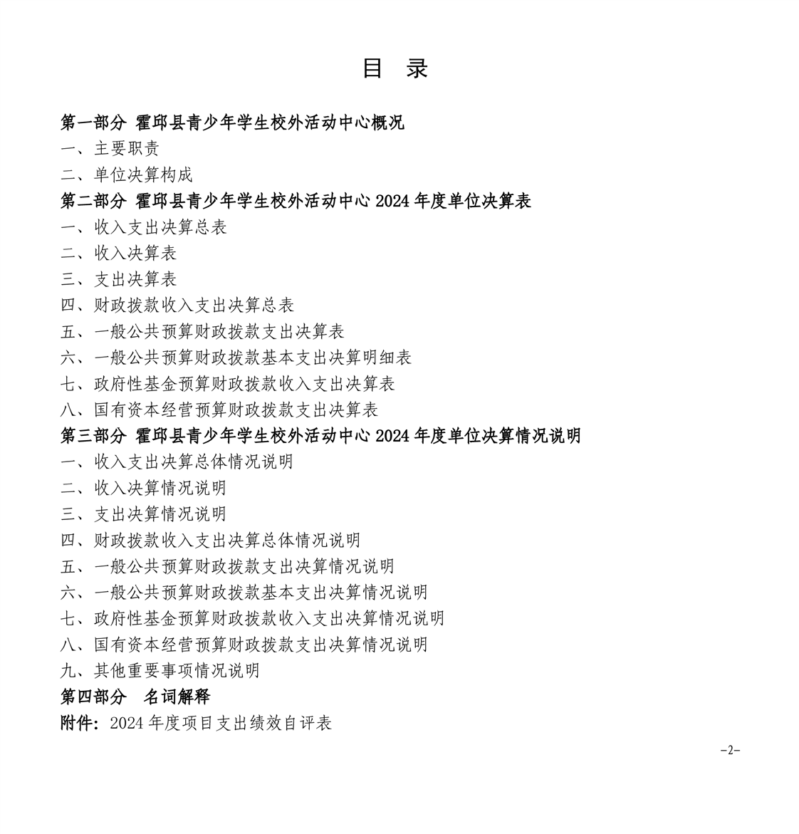 霍邱县青少年学生校外活动中心 2024 年度单位决算
