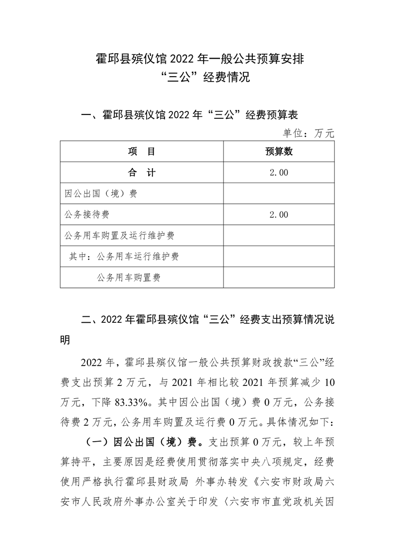 霍邱县殡仪馆2022年部门“三公”经费预算公开