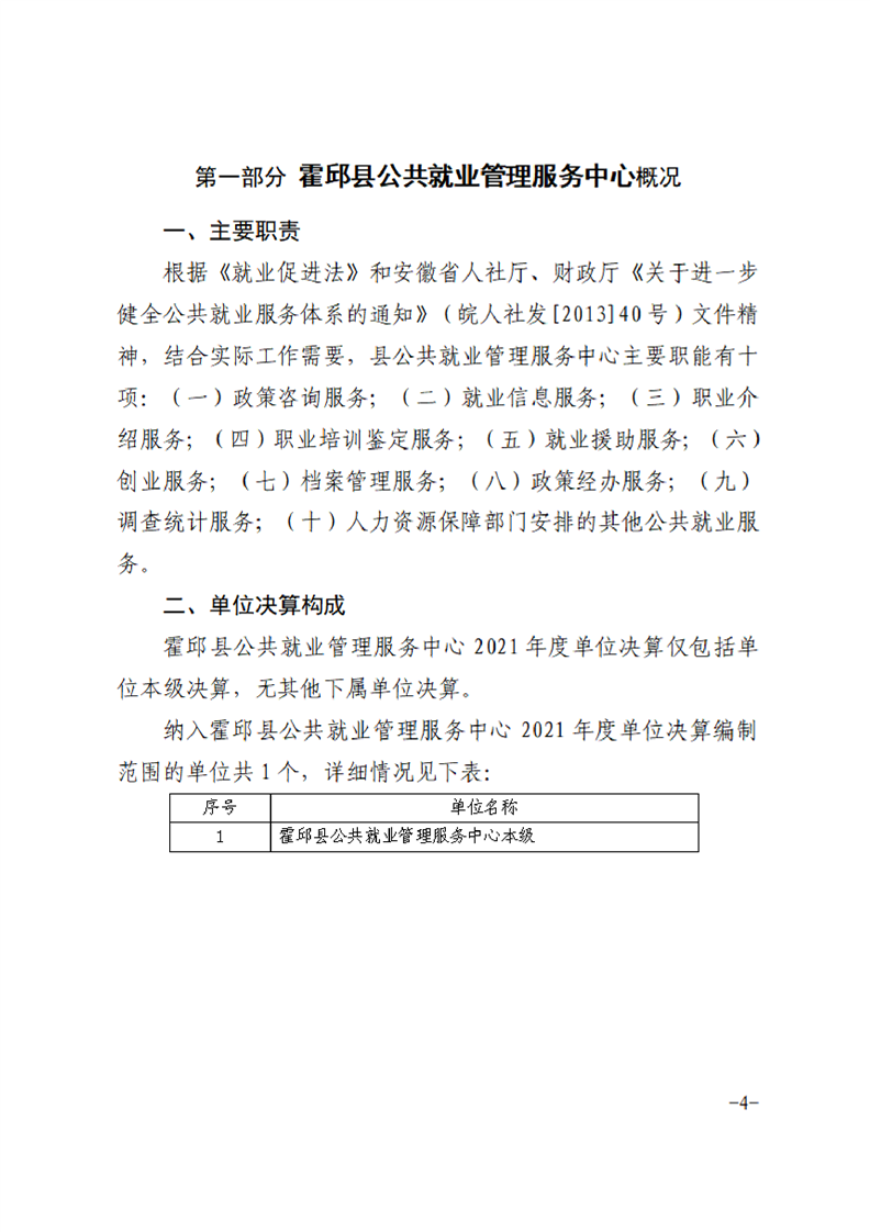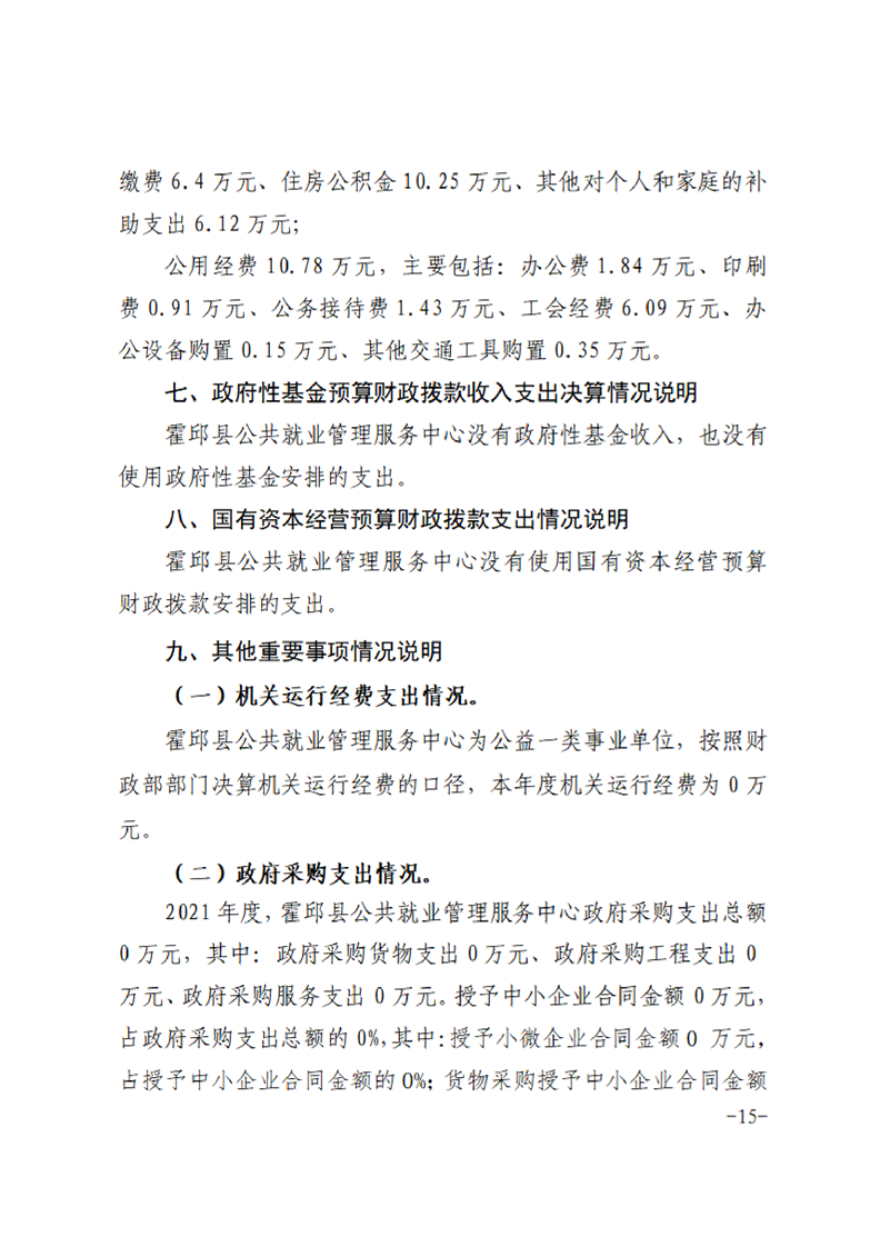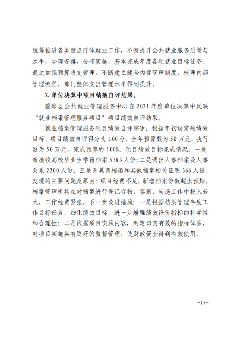 霍邱县公共就业管理服务中心2021年度单位决算