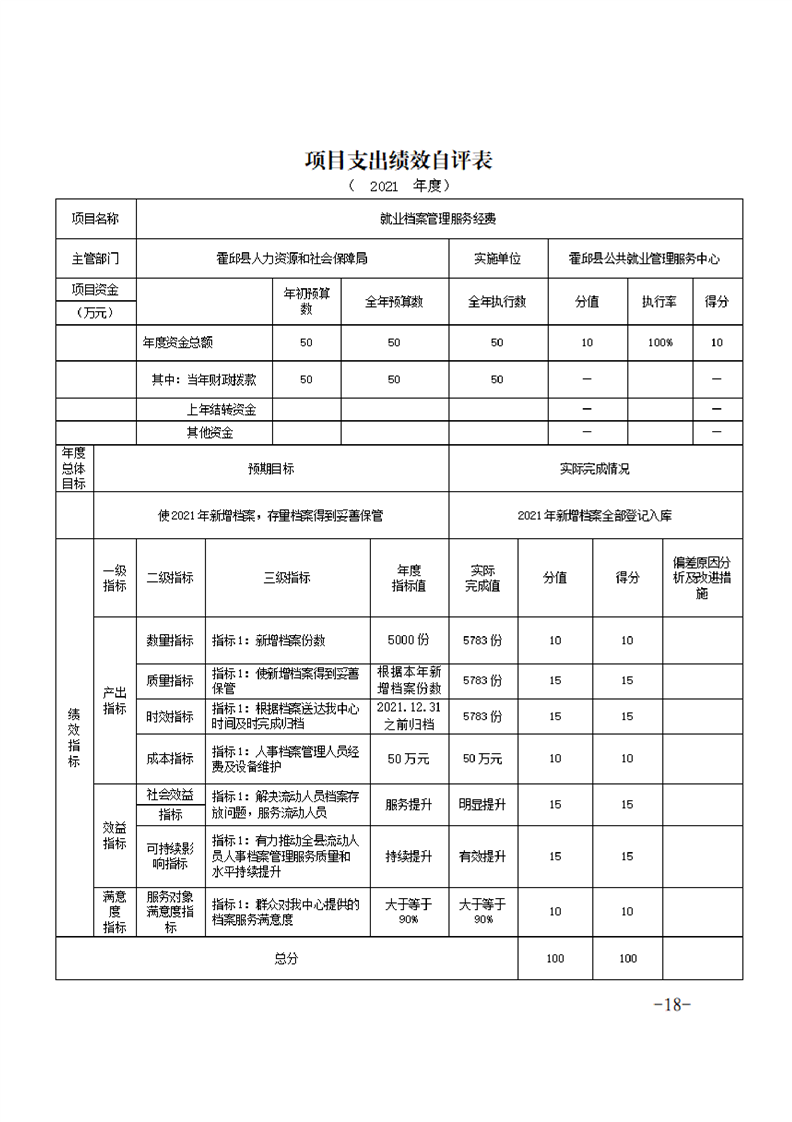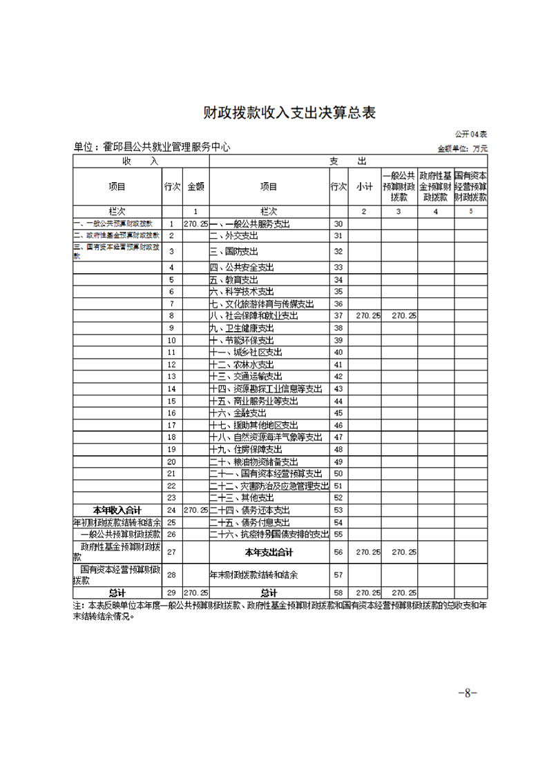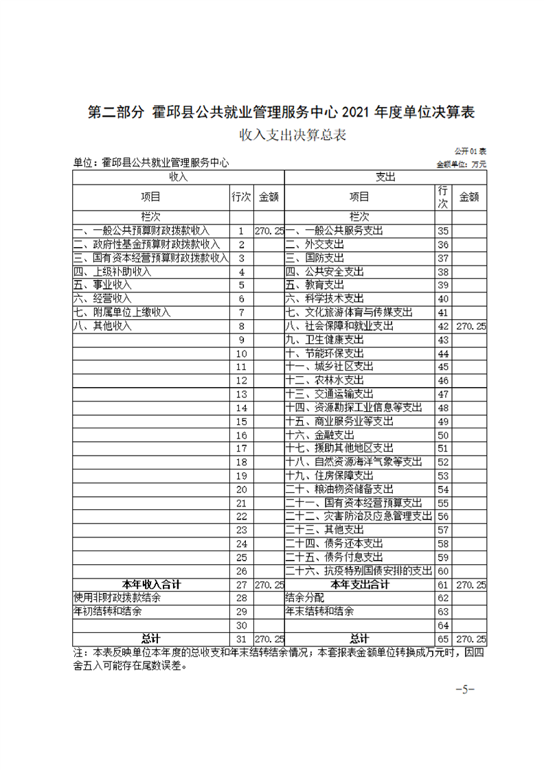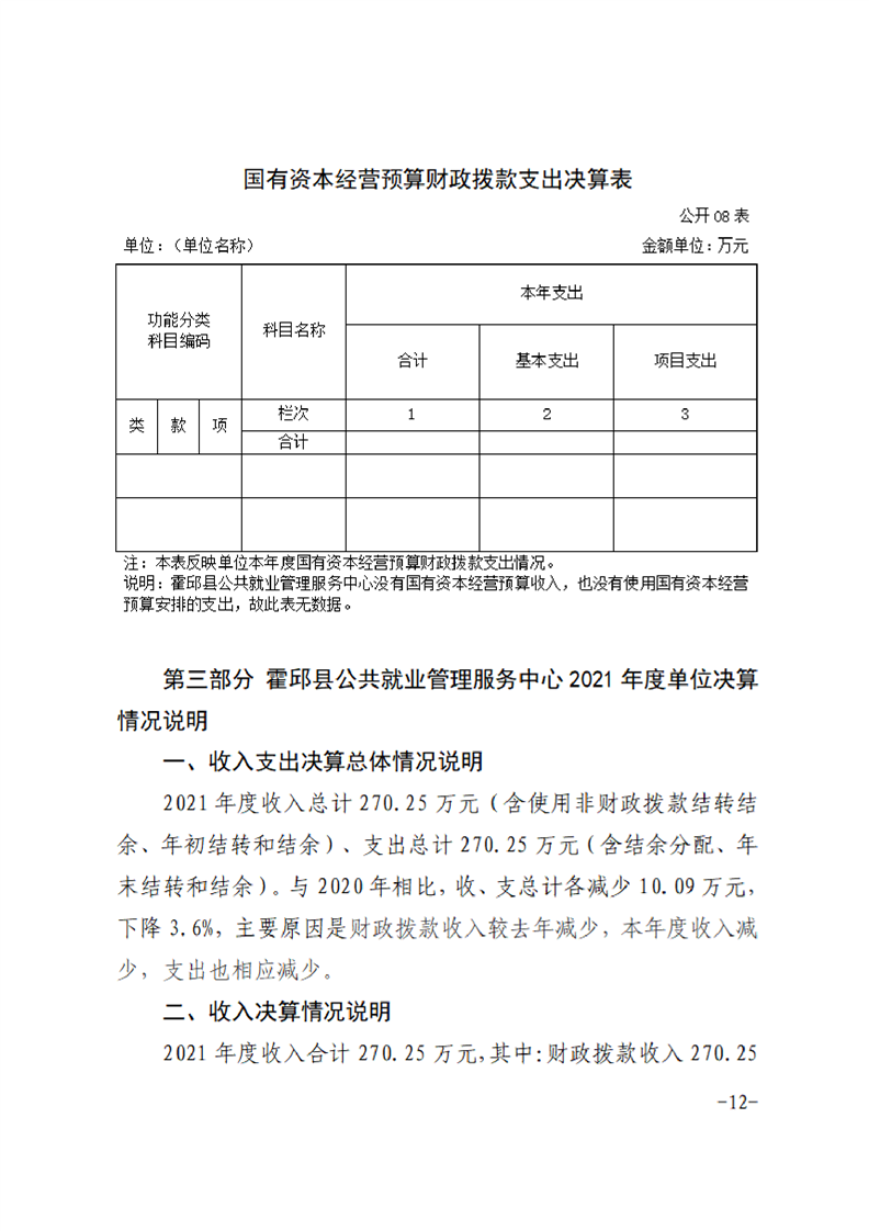 霍邱县公共就业管理服务中心2021年度单位决算