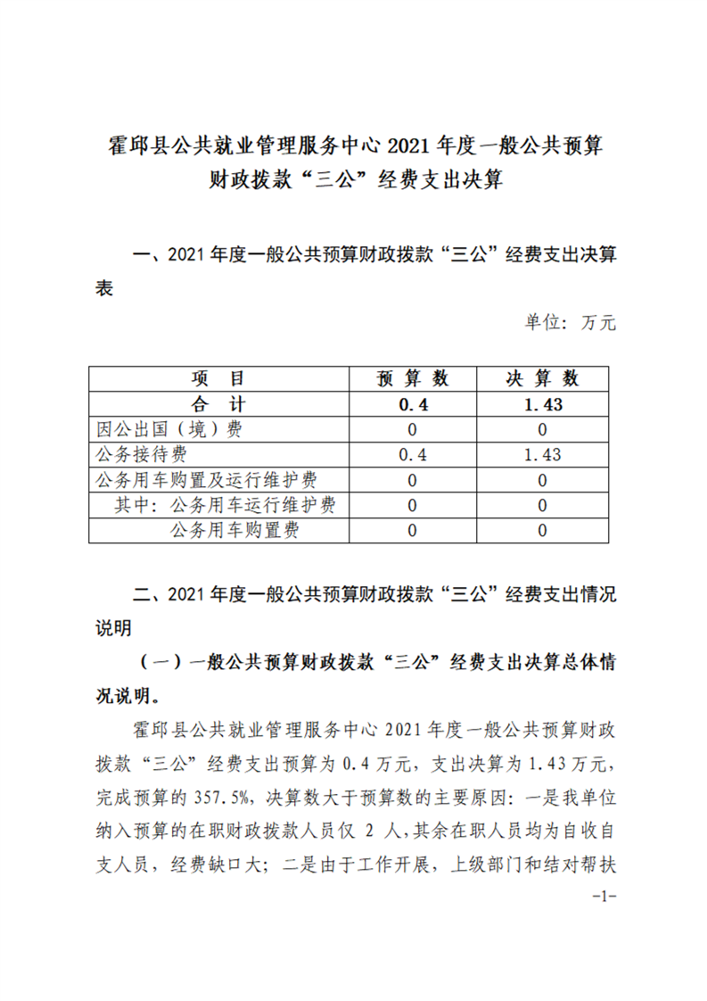 霍邱县公共就业管理服务中心2021年度“三公”经费支出决算情况说明