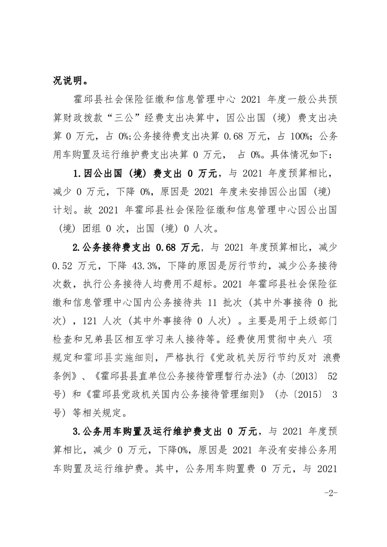 霍邱县社会保险征缴和信息管理中心2021年度单位“三公”经费决算公开